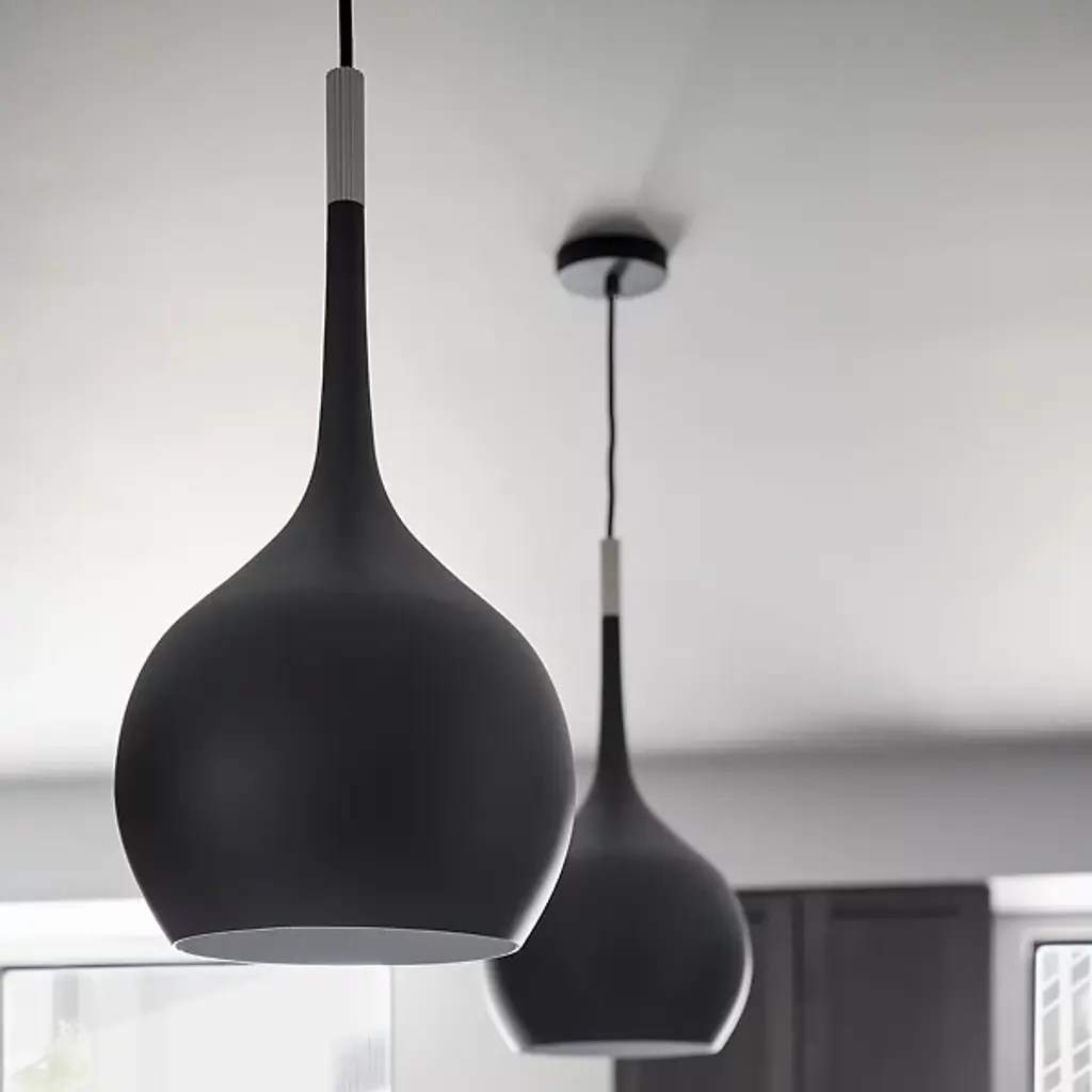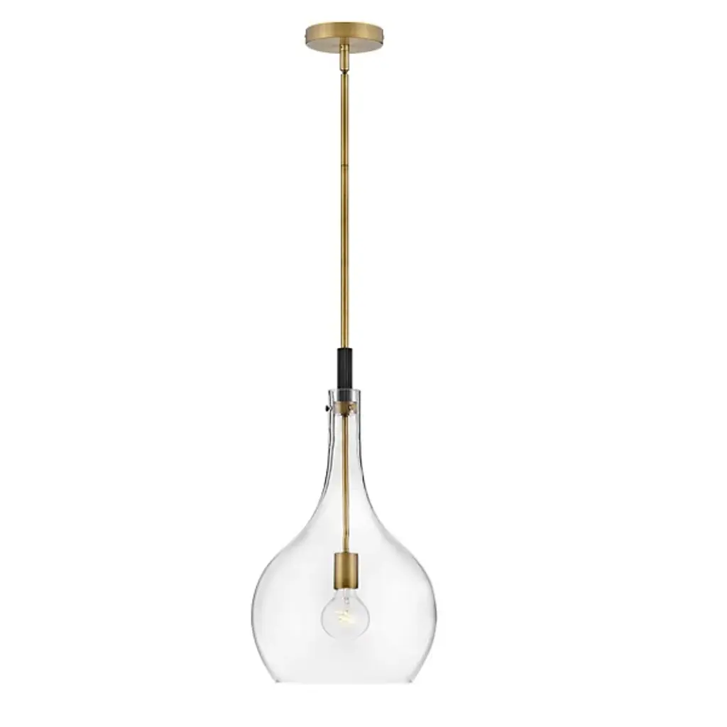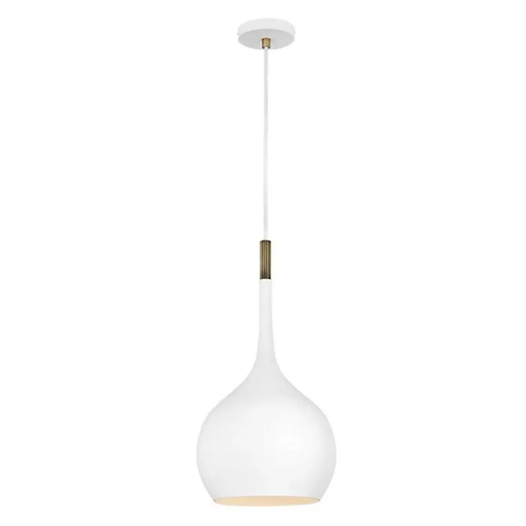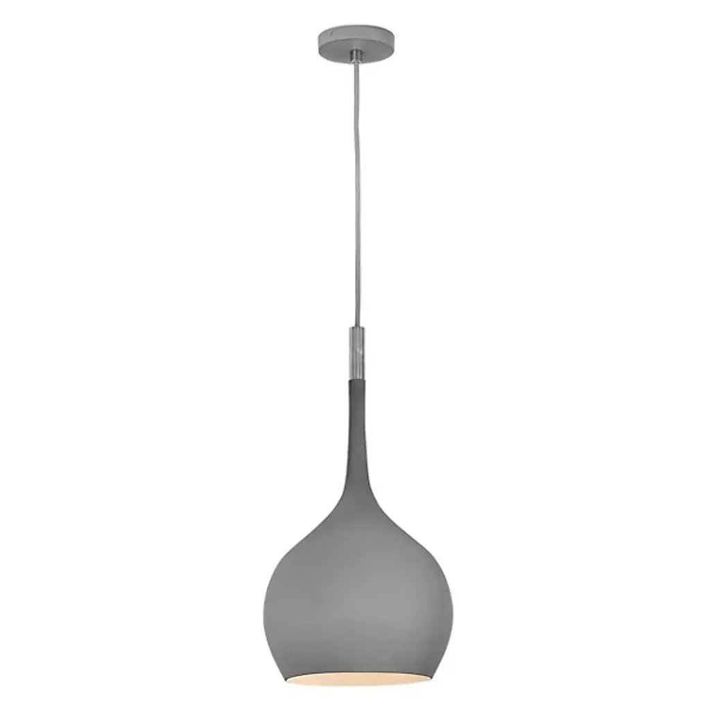 Mesmerizing to the eyes with effortless curves. The Ziggy Pendant from Hinkley Lighting hangs over dining rooms with an unforgettable silhouette with the contours of a graceful figure. Like a droplet of water in motion, an attractive steel shade suspends in the air with a stylish fabric cord. When turned on, a golden glaze coats the inner surfaces of the shade, then cascades down a circular opening in a seductive downlight.