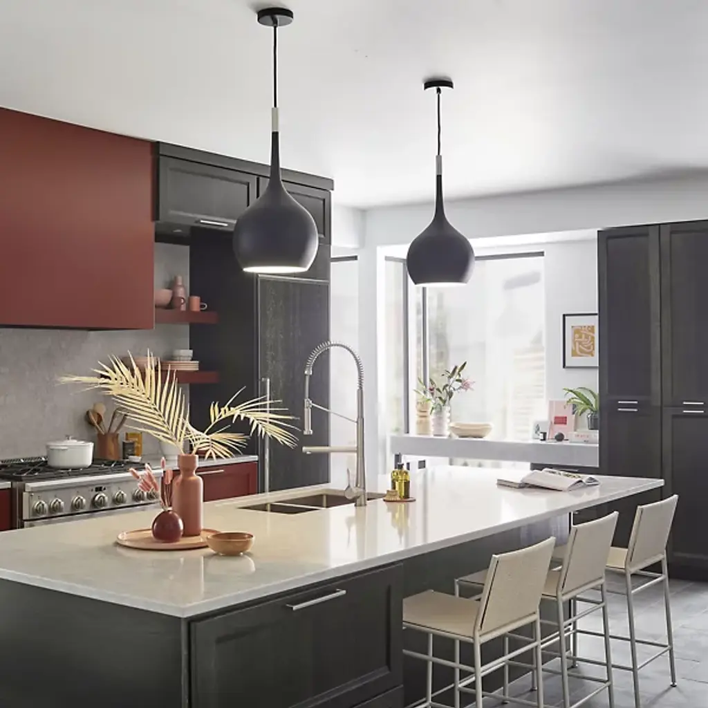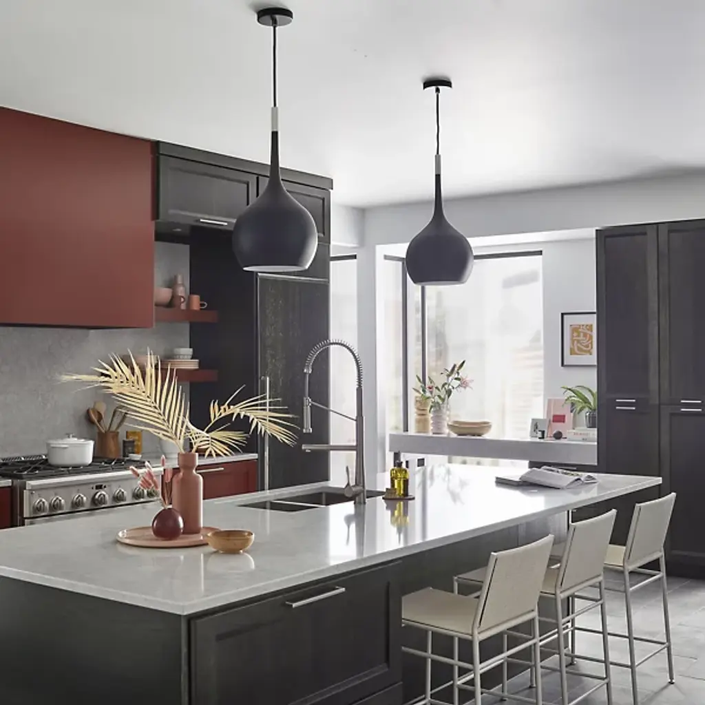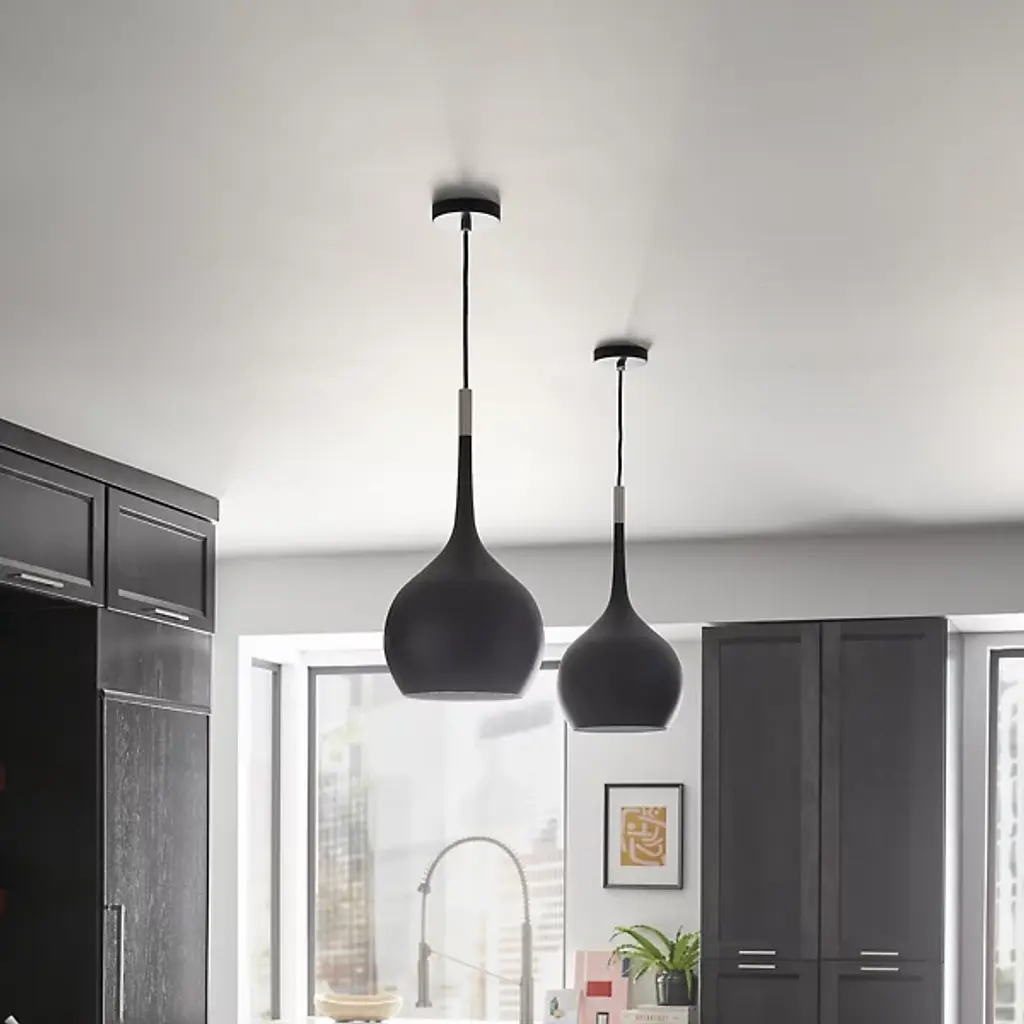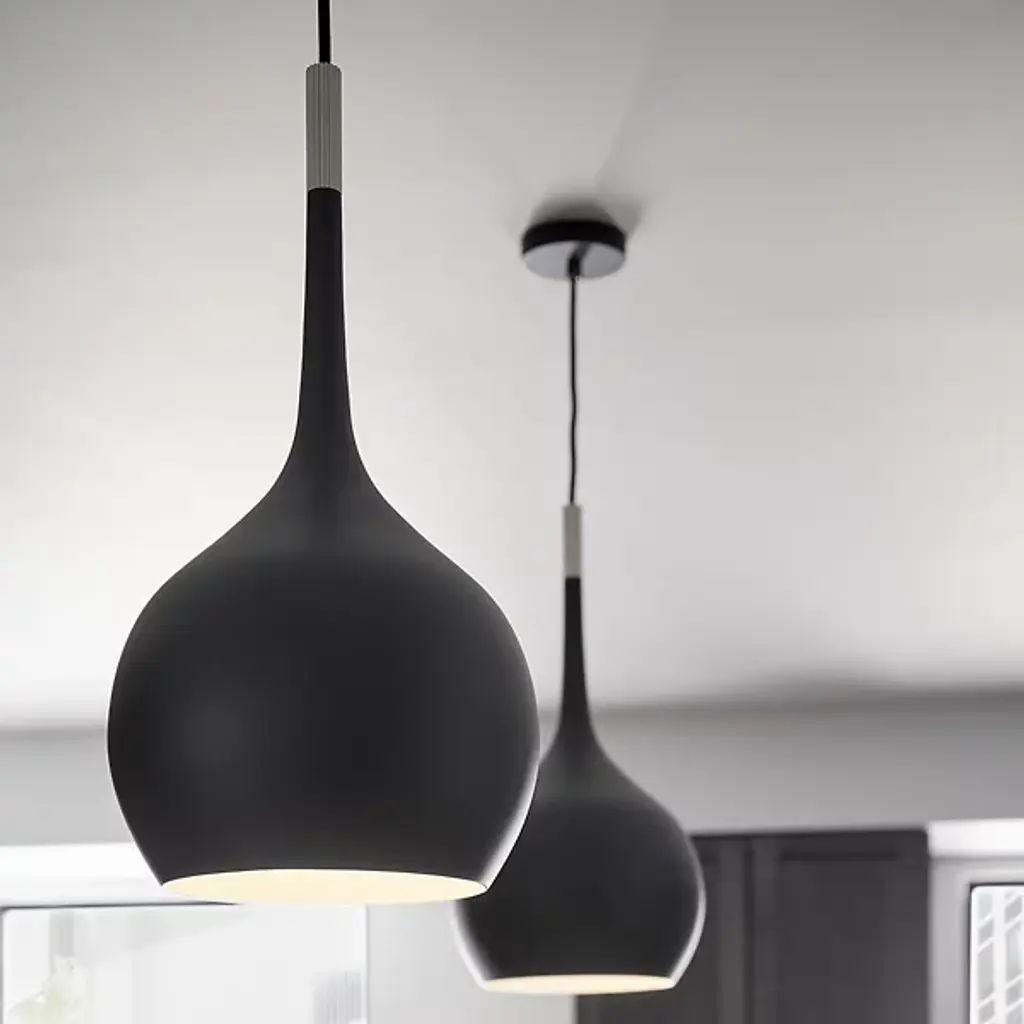 Mesmerizing to the eyes with effortless curves. The Ziggy Pendant from Hinkley Lighting hangs over dining rooms with an unforgettable silhouette with the contours of a graceful figure. Like a droplet of water in motion, an attractive steel shade suspends in the air with a stylish fabric cord. When turned on, a golden glaze coats the inner surfaces of the shade, then cascades down a circular opening in a seductive downlight.