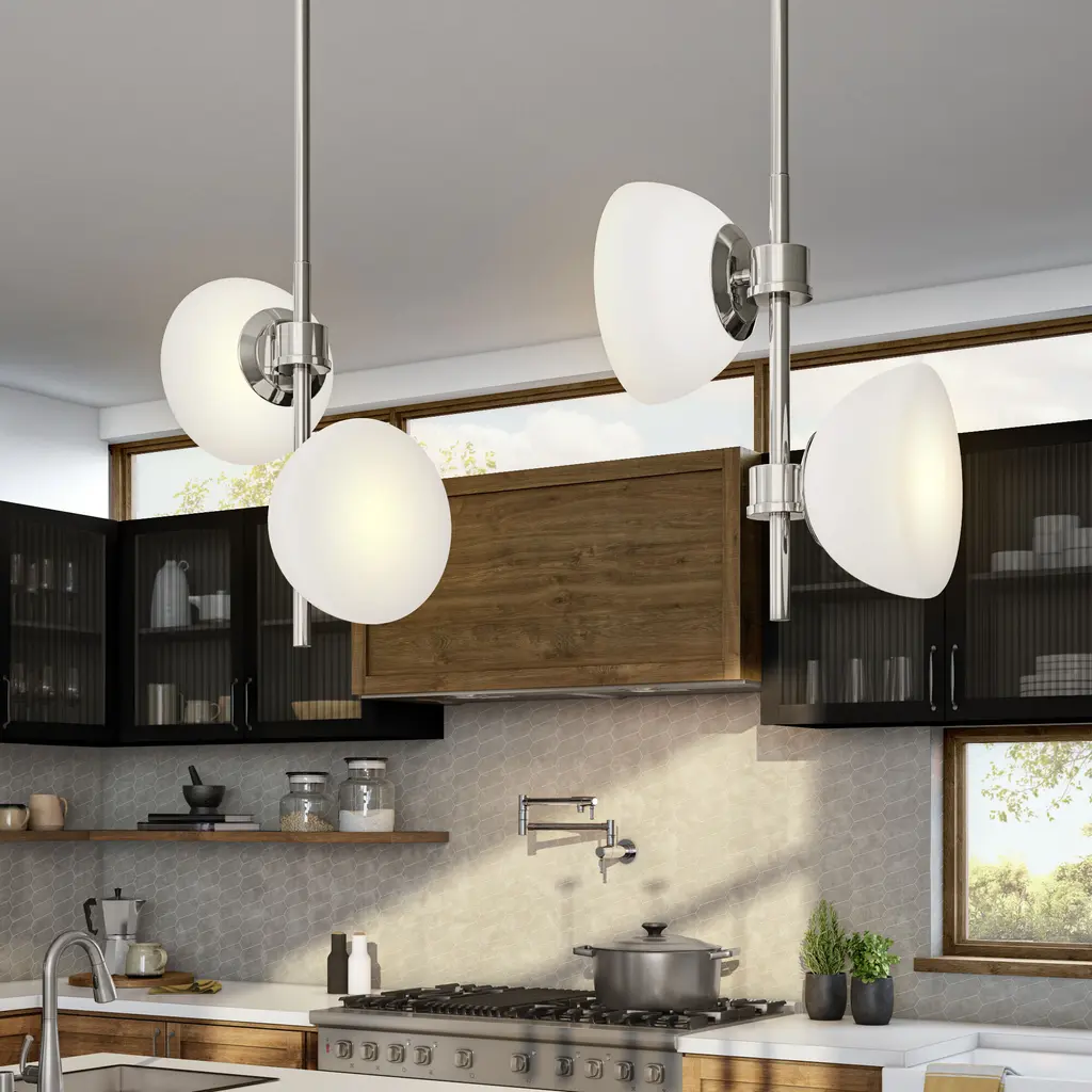 The Retro vibe of the Zio collection is reinforced by the puff-shaped Etched Opal Glass shades and the luxurious Polished Nickel finish. Combine these unique lighting pieces with Modern, Mid-Century Modern, or Glam interior designs for a great conversation piece. Made from durable steel for years of enjoyment and illumination.