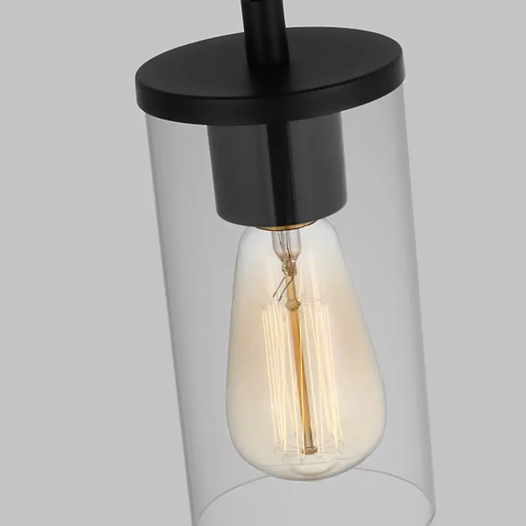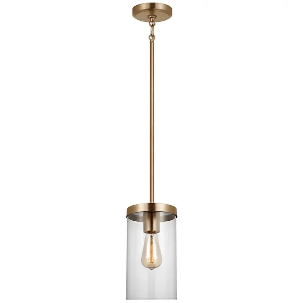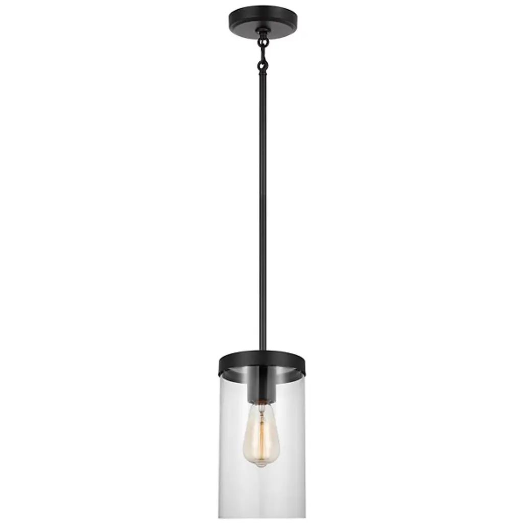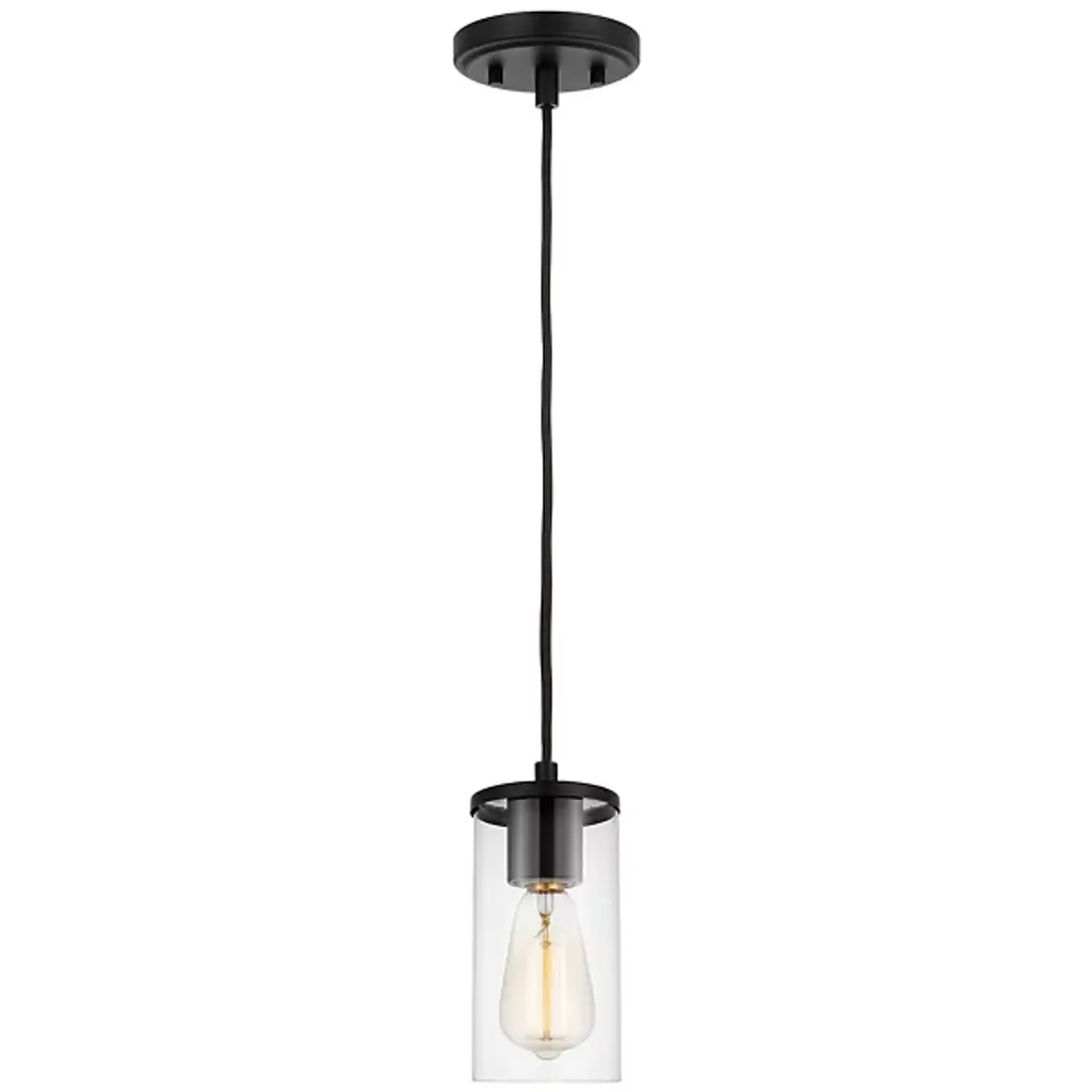 The Zire Mini Pendant by Visual Comfort Studio, formerly known as Sea Gull Lighting, is an elegant and minimalistic piece. A Clear Glass cylindrical shade descends from a simple cord and surrounds a single exposed bulb for an Edison-inspired design that has a crisp and clean silhouette. Lending a warm layer of light to surroundings, this contemporary pendant has some industrial flair and is capped with a slim Metal top. Blending form and function, this tailored piece makes a statement when placed in a linear arrangement.