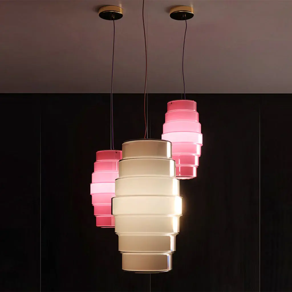 Elevate your space with the dynamic Zoe Pendant Light from Venini. Designed by Doriana and Massimiliano Fuksas, this exquisite piece evokes a Chinese lantern, blending Venetian and Asian aesthetics. The blown opaline glass and gold-plated metal structure exude luxury and craftsmanship. Bring a touch of art and sophistication to any room. Highlights