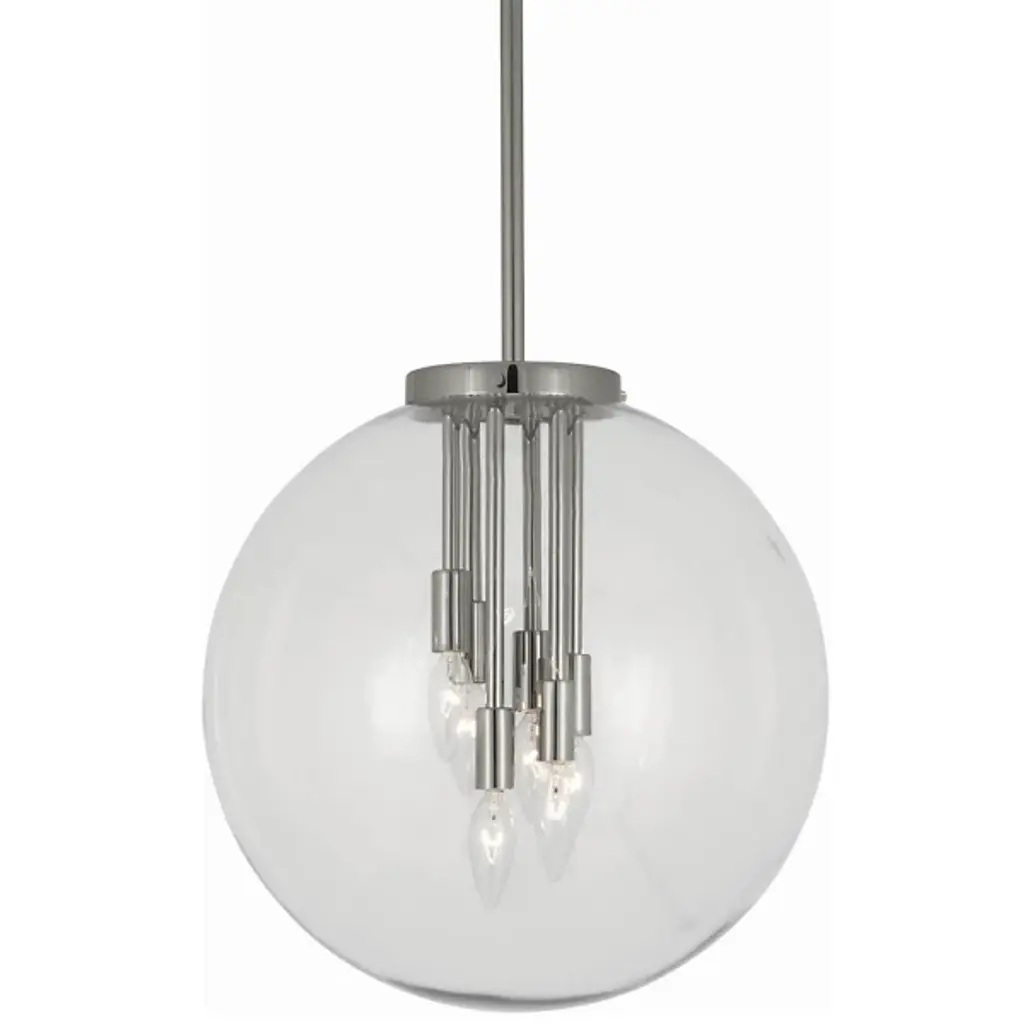 A sphere of clear glass exposing the downward facing lamps makes the Robert Abbey Zoltar Pendant a lighting option with mystical origins. Named after the well known fortune teller machine, the Zoltar Pendant bears the same crystal ball shape as the piece's focus. Hanging from a simple downrod, all the attention is put onto the large scale glass globe, illuminating the space with a hint of enchantment.