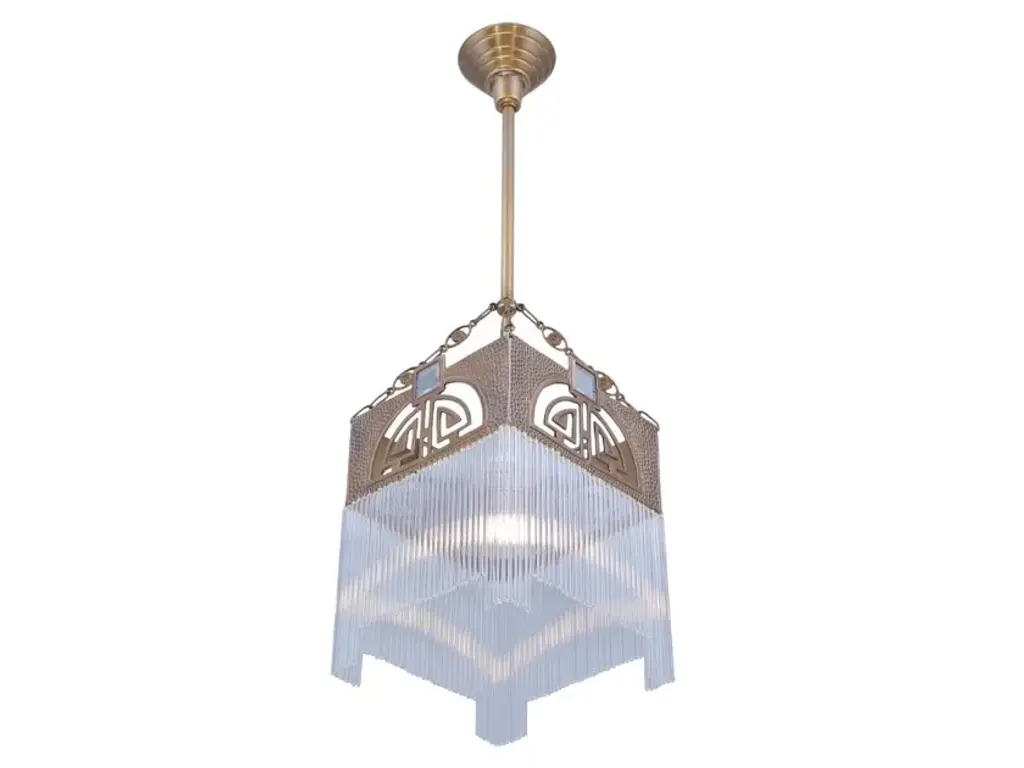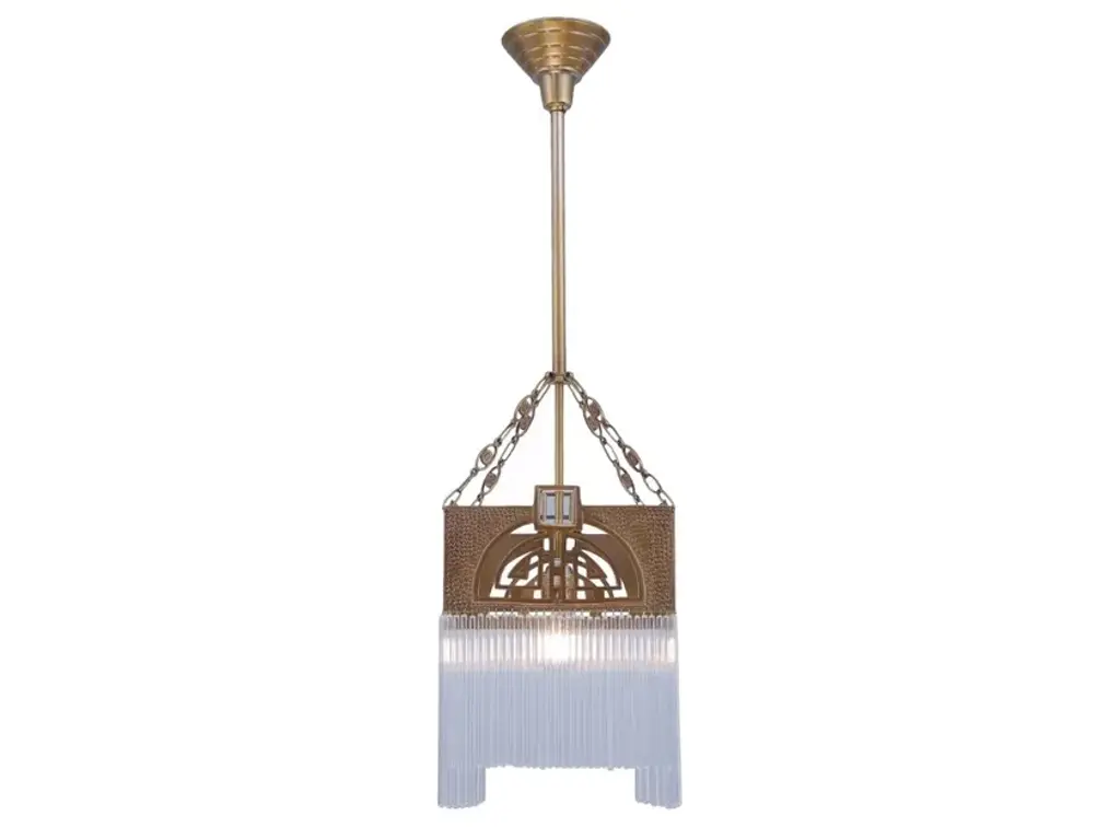 Zürich is a suspension lamp made of brass available in different finishes.Finishes: Antique, Shiny brass, Matt brass, Shiny nickel, Matt nickelCapacity: 1x75 W E27The fitting and the pendant of this collection are similar to the ones of Berlin collection. They have a geometrical decor and are fitted with glass tubes, while the table lamp has a delicate body. Due to their size, these lamps go well with smaller rooms.