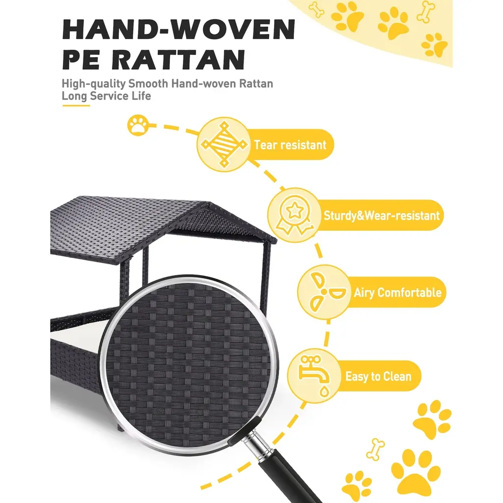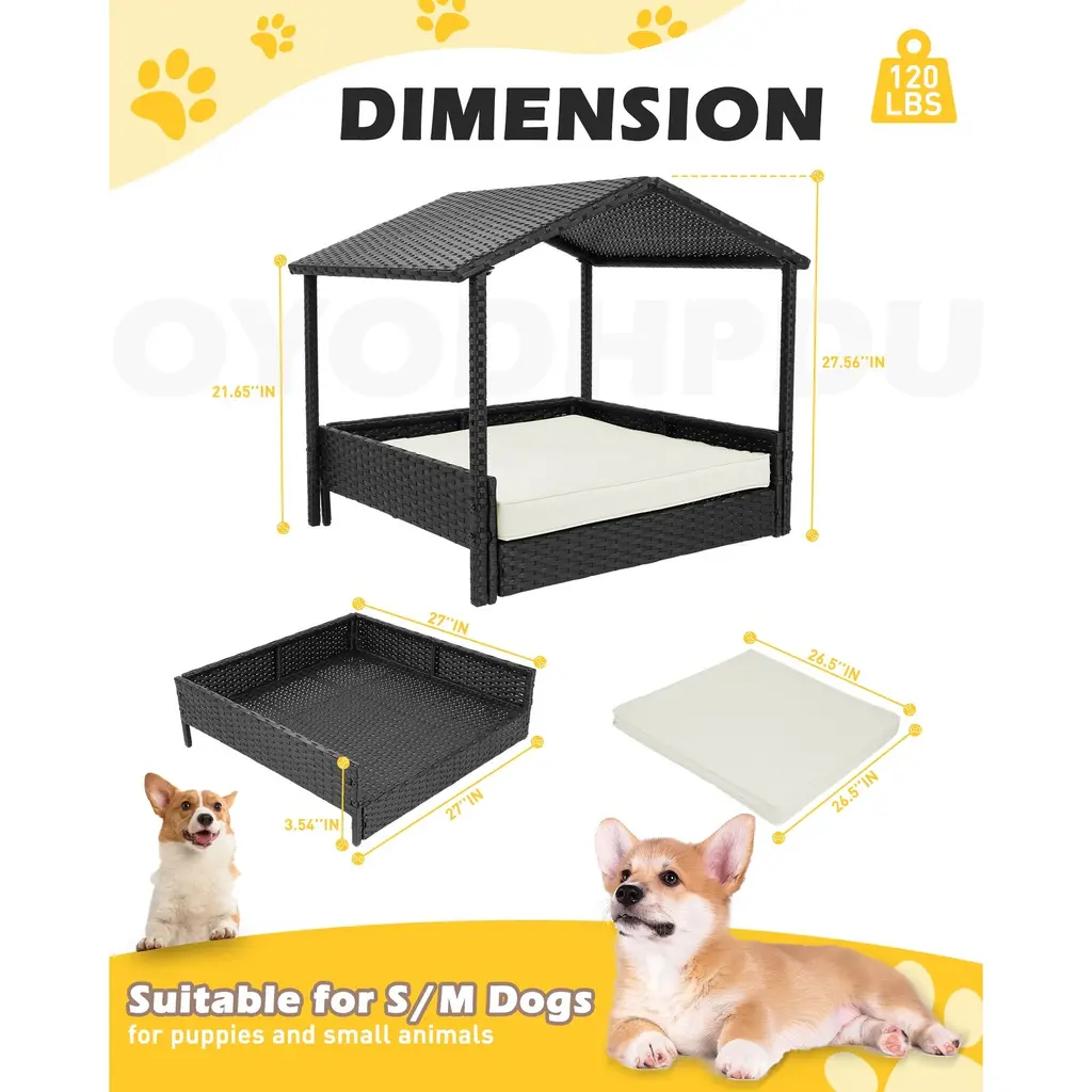 Treat your pet to the ultimate in relaxation with an Pet Bed With Canopy. It not only keeps your dog comfortable, but also promotes airflow on all sides of the bed to keep them cool and content. Made from durable PE wicker, it is perfect for both indoor and outdoor use, ensuring your pet can enjoy their nap time in style. Features: Specifications: