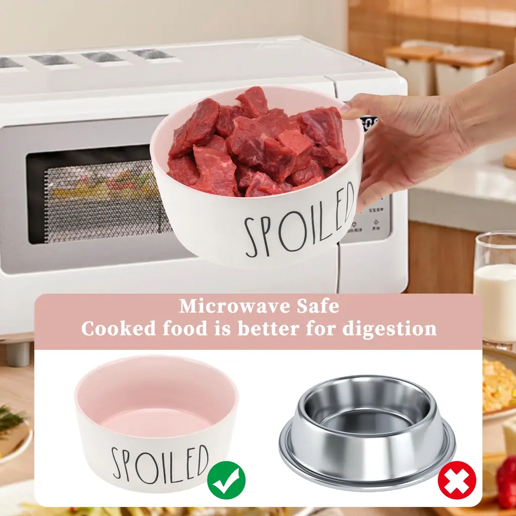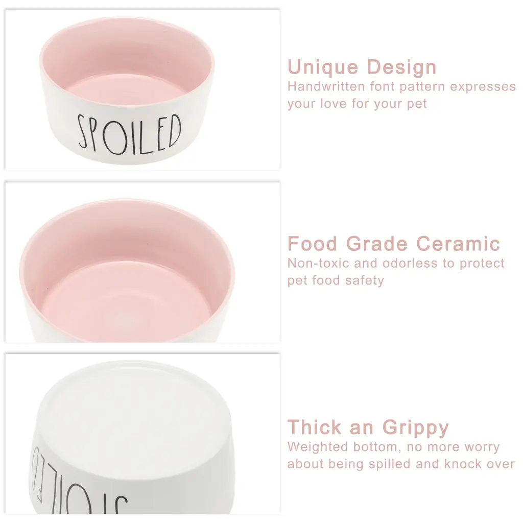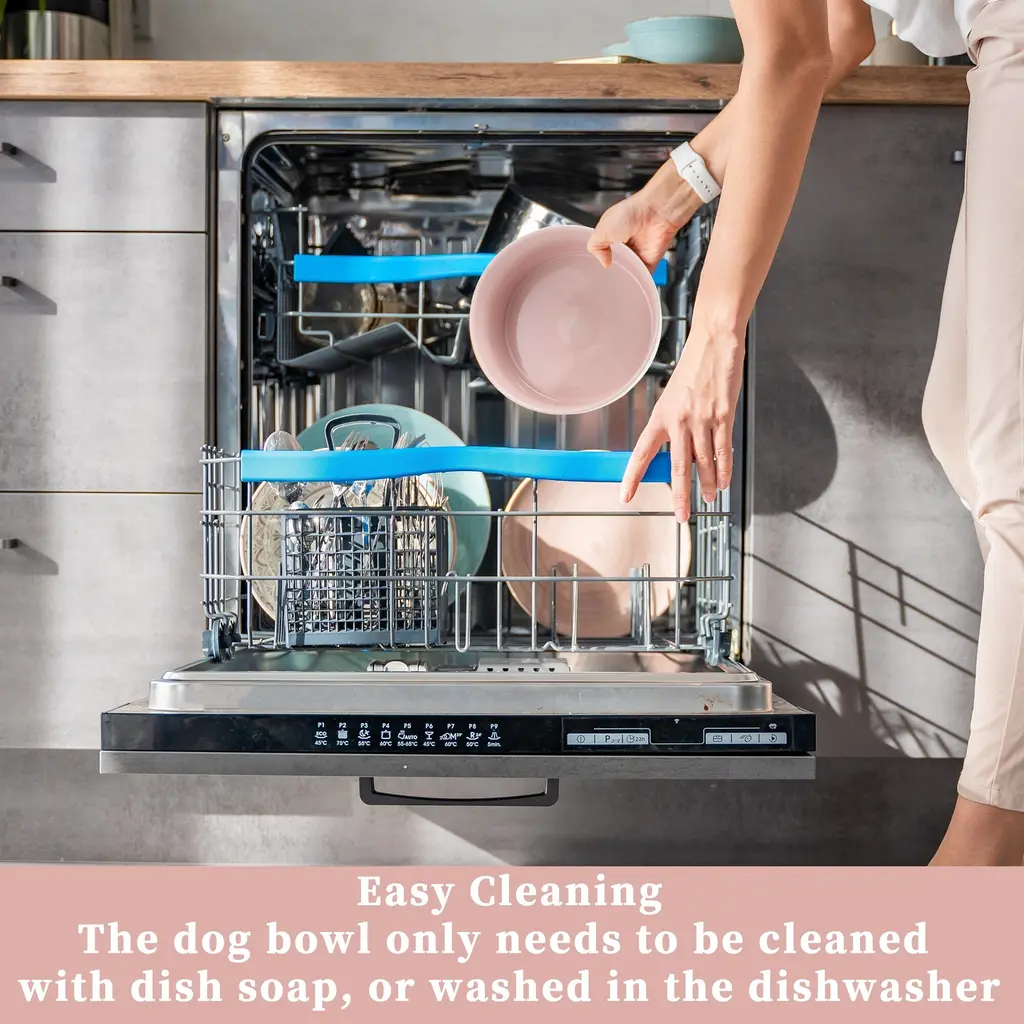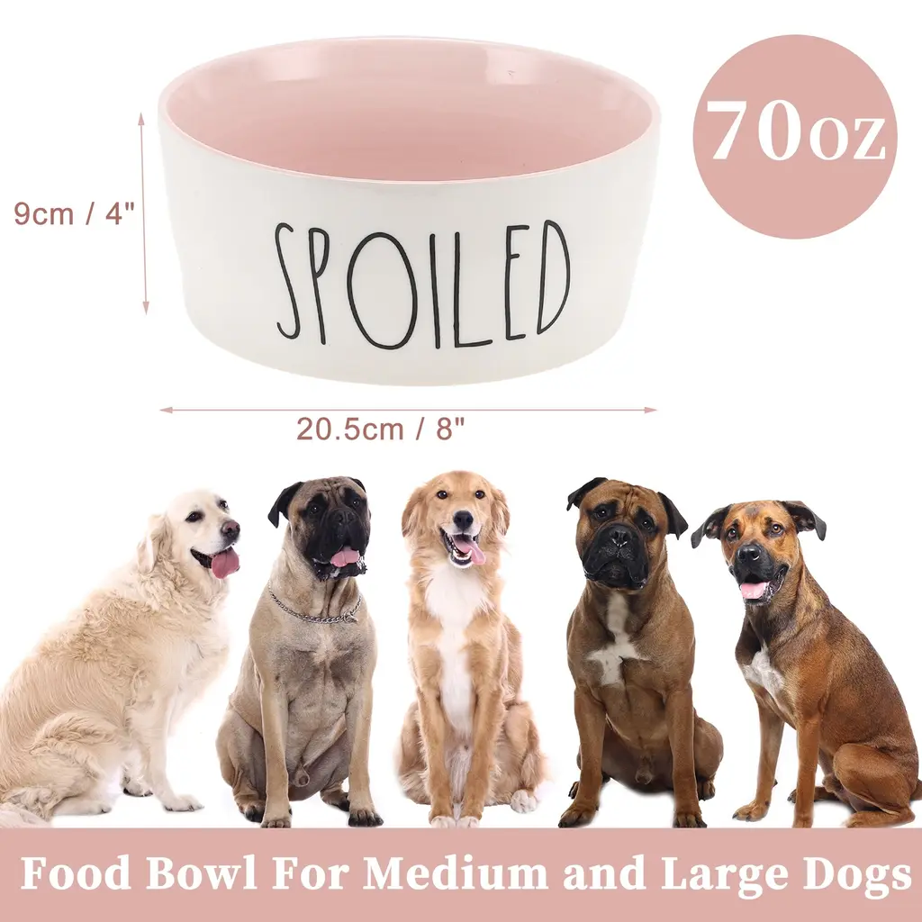 Features:Made of quality ceramic for safer use, no smell, is durable and protects your beloved pet's food safety.This dog bowl has a large capacity of 70 ounces / 2100ml, and measures 8" L x 4" H. It can be used as a food bowl or water bowl, suitable for different breeds of medium and large dogs.The weight and height of the bowl make it difficult to move around and tip, slip and spill resistant, which means less cleanup for you.The surface of the dog bowl is designed with clashing colors, which is good for the minimalist style of home decoration.Instructions: Microwave & Dishwasher SafeSpecifications:Color: PinkMaterial: CeramicSize: 20.5x9cm / 8"x4"(L*H)Target Species: Cats, DogsBreed Recommendation: Medium, LargeBowl Capacity: 70 ounces/ 2100mlPackage List:1 Pc Dog Bowl