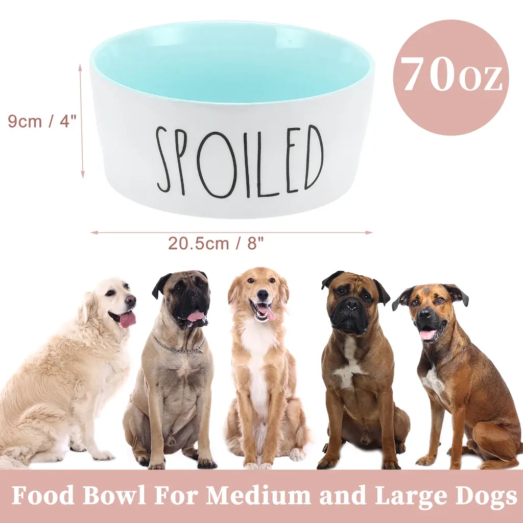 70oz Ceramic Dog Bowl 8" Large Dog Water Bowl Non-Slip Dog Food Bowls - White