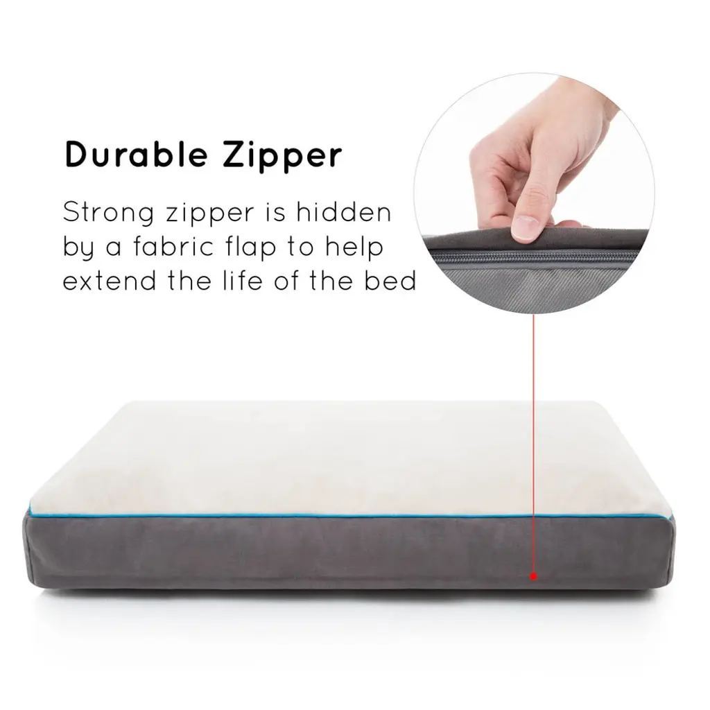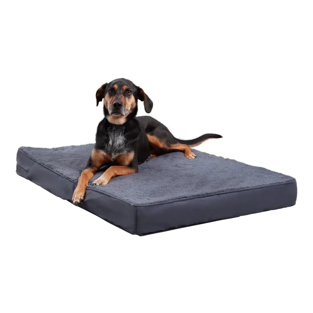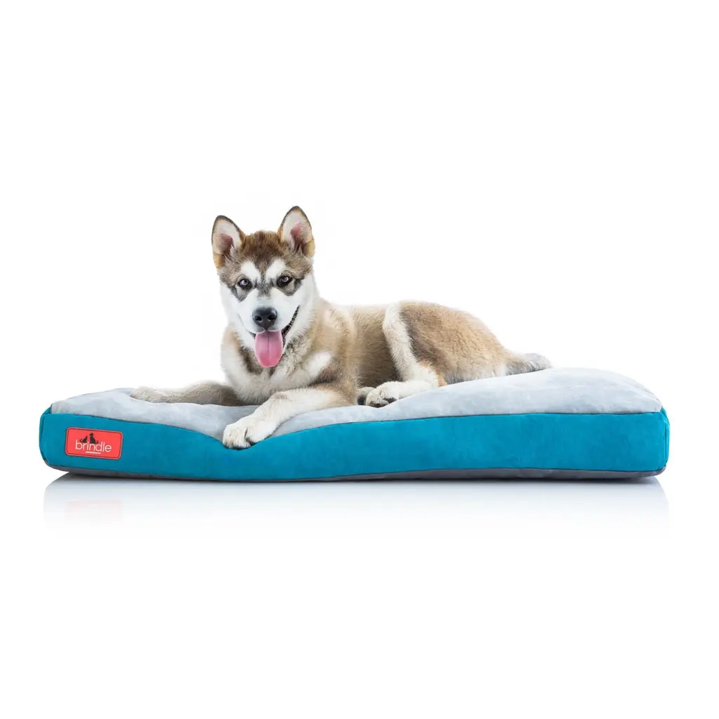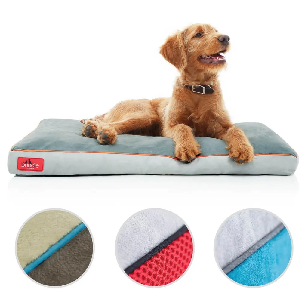 Treat your loyal family pet to a supportive, comfortable bed with this rectangular model from Brindle. Available in a wide range of sizes to accommodate most breeds and even cats, this dog bed's memory-foam filling conforms to your pet's body and keeps its shape with daily use. The polyester cover comes in your choice of colors and is machine-washable for hassle-free freshening.Features:Color: Blue, brown, redPattern: SolidStyle: ContemporaryFeatures: Hypoallergenic, portableIncludes: One (1) dog bedMaterials: Memory foam, fabricRemovable cover: YesFill type: Shredded memory foamNon-skid: YesWashing instructions: Machine washBed DimensionsXX-Small: 17 inches long x 11 inches wide Extra small: 22 inches long x 16 inches wideSmall: 28 inches long x 18 inches wide Medium: 34 inches long x 22 inches wide Large: 40 inches long x 26 inches wideExtra large: 46 inches long x 28 inches wideXX-Large: 52 inches long x 34 inches wide