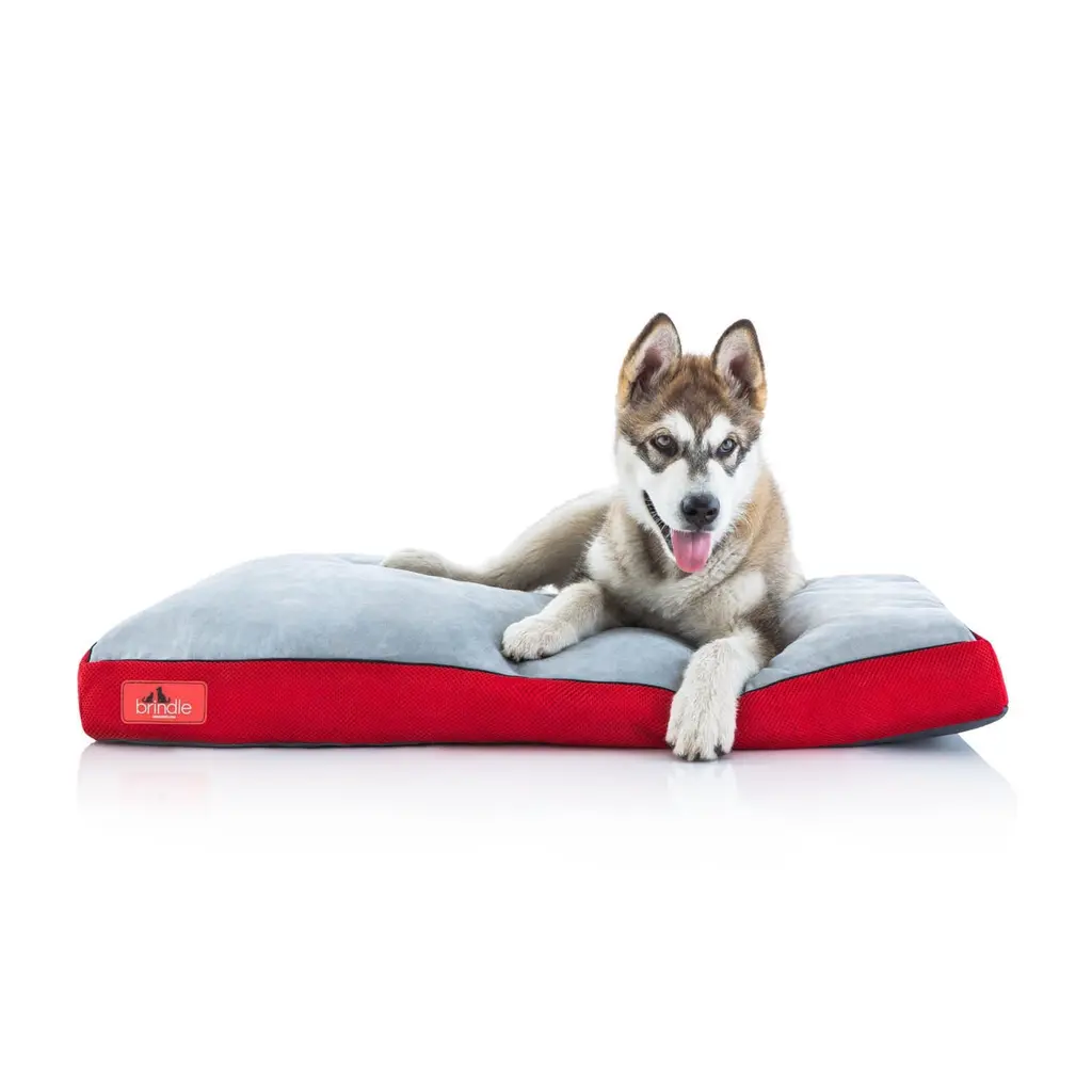 Treat your loyal family pet to a supportive, comfortable bed with this rectangular model from Brindle. Available in a wide range of sizes to accommodate most breeds and even cats, this dog bed's memory-foam filling conforms to your pet's body and keeps its shape with daily use. The polyester cover comes in your choice of colors and is machine-washable for hassle-free freshening.Features:Color: Blue, brown, redPattern: SolidStyle: ContemporaryFeatures: Hypoallergenic, portableIncludes: One (1) dog bedMaterials: Memory foam, fabricRemovable cover: YesFill type: Shredded memory foamNon-skid: YesWashing instructions: Machine washBed DimensionsXX-Small: 17 inches long x 11 inches wide Extra small: 22 inches long x 16 inches wideSmall: 28 inches long x 18 inches wide Medium: 34 inches long x 22 inches wide Large: 40 inches long x 26 inches wideExtra large: 46 inches long x 28 inches wideXX-Large: 52 inches long x 34 inches wide