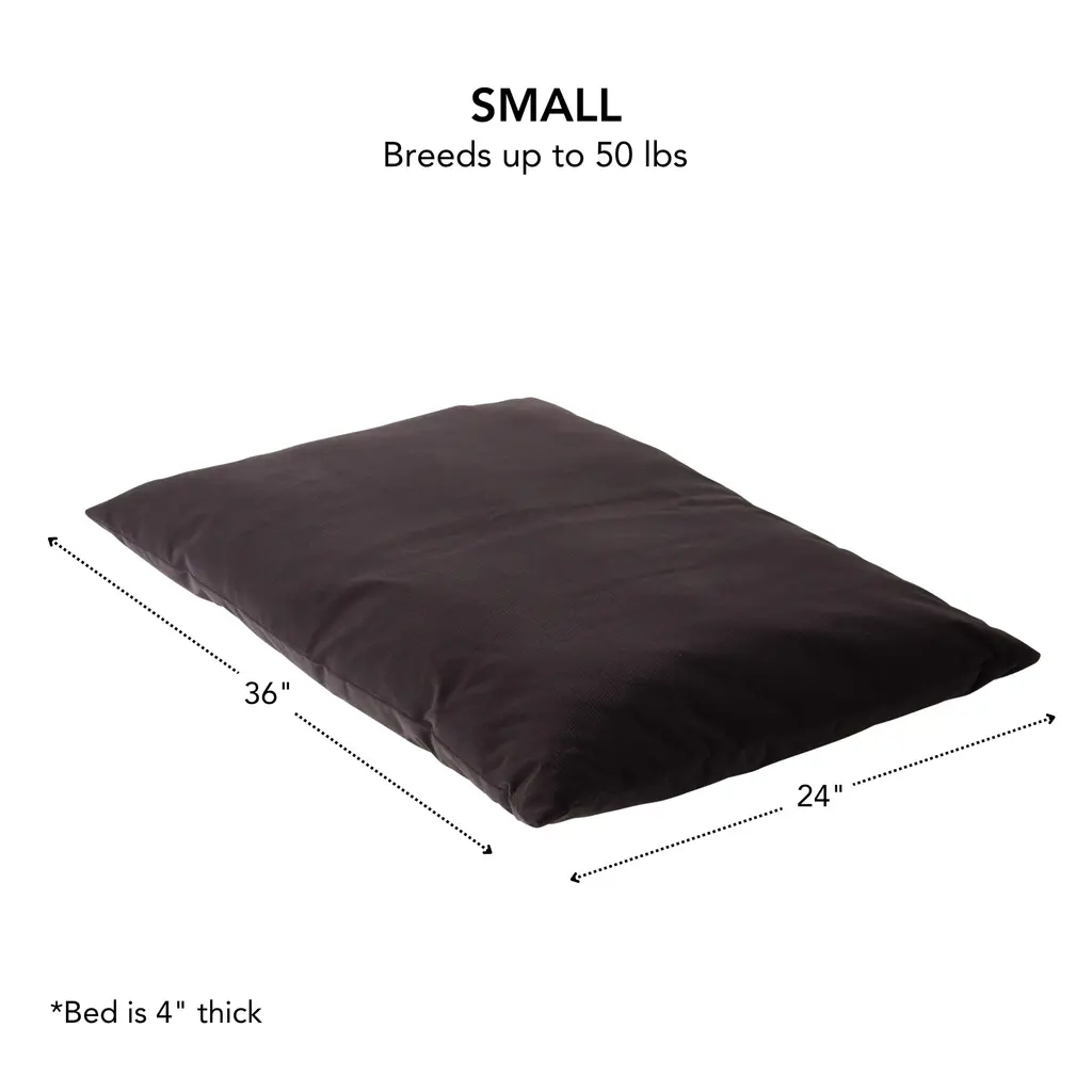 Every pup needs a cozy spot to rest after a day of play. The new Charlie Throw Dog Bed by Happy Hounds is just the spot. Its simple design and rich color options blend easily into any décor. The removable cover is machine washable making it easy to keep your dog's bed clean and fresh. The durable microfiber fabric is water and stain resistant, and features a subtle corduroy texture. Bed is filled with a plush polyester fiber made from 100% recycled post-consumer plastic bottles.Corduroy texture microfiber fabricRemovable, machine washable coverSimple, pillow style designWorks well in crates or on the go as wellAvailable in Camel, Charcoal and Sage GreenWater and Stain ResistantReversible designBeds are individually filled in the USA, dimensions can be +/- 1.5"