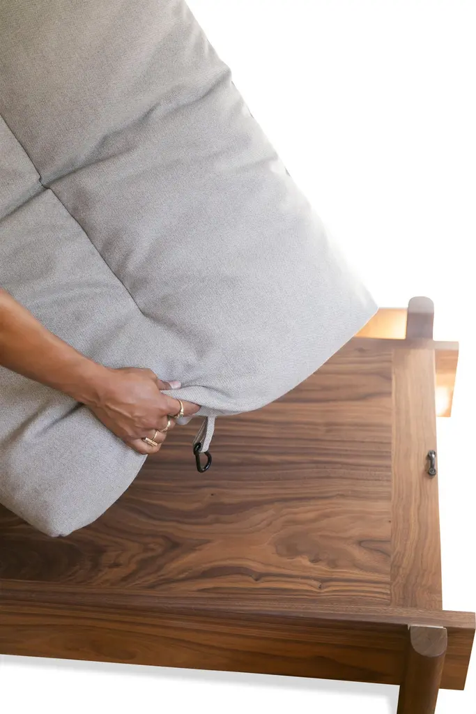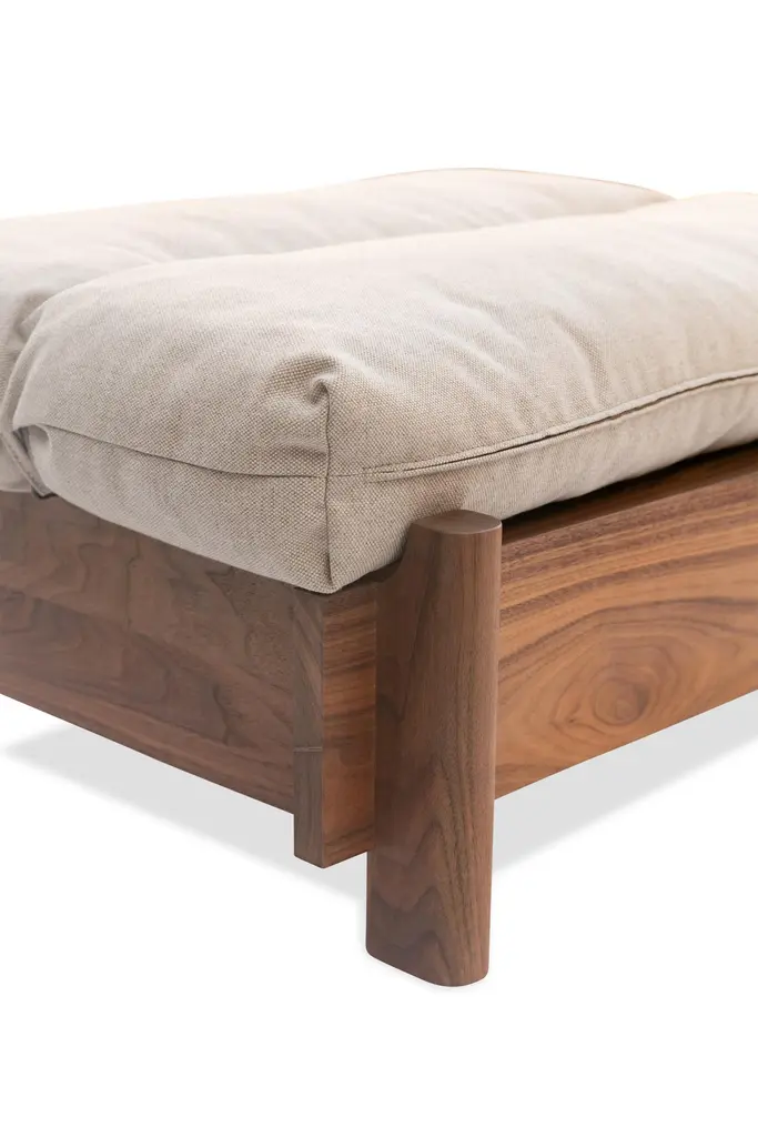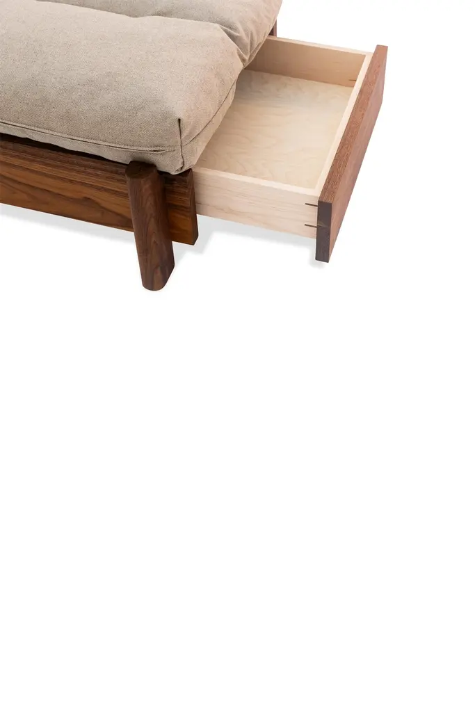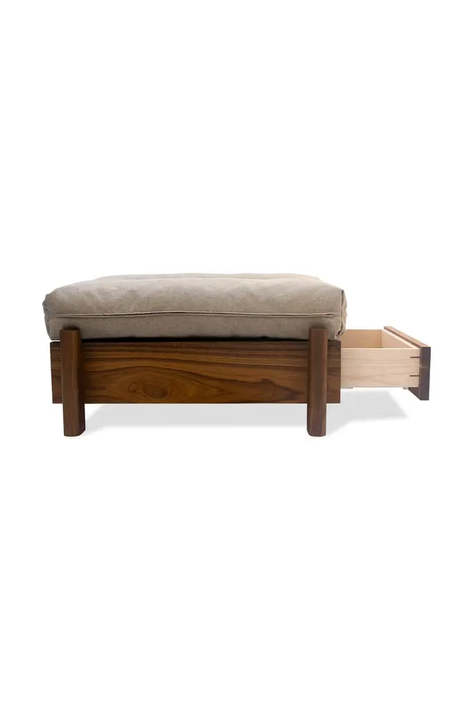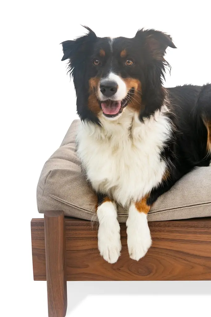The LAPILO Dog Bed offers both style and functionality. The frame is of solid wood construction, and features a removable and flippable cushion that clips onto the base. The cushion inserts are interchangeable, and cushion covers are sold separately in various fabrics or can be made with your own material. The bed also includes a discrete, soft-close drawer within the wood frame for convenient storage, blending minimalist design with practical use. This sophisticated dog bed appears as an ottoman and is perfect for multi-functional living spaces, combining elegance with utility.SMALL 18"W x 14"D x 12"HLARGE 33"W x 28"D x 12"HCustom sizing is available. PLEASE INQUIRE FOR COM/COL, OR CUSTOMIZATION REQUESTSThis item is hand made to order, please allow 8-10 weeks lead time.Due to the organic nature of wood no two pieces will be the same. Some variation in tone, grain, color, and finish may be different than the images shown on our site. Finish may change over time. Natural wood may display small splits, knots, joint lines, or other organic features, adding unique character to each piece.