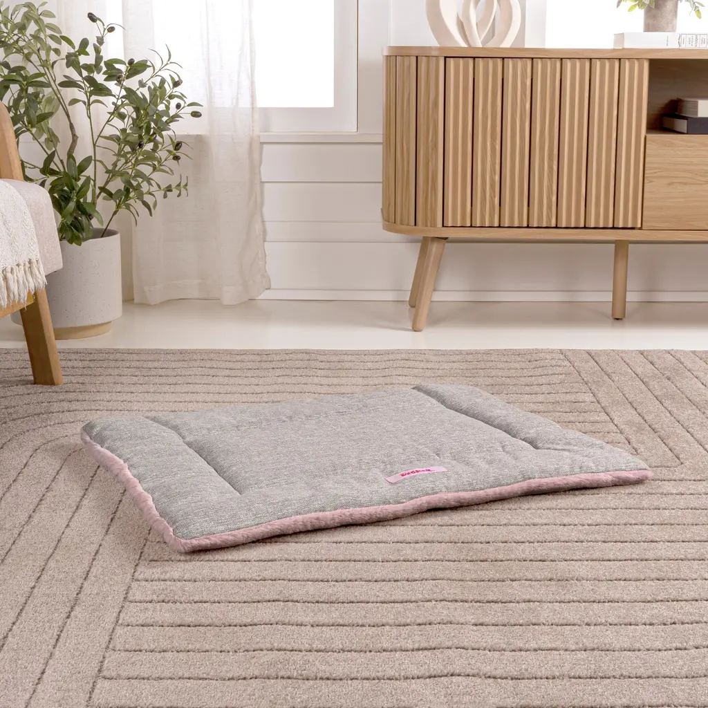Flora Extra Large Classic Cottage Linen/plush Ultra Soft Reversible Pet Bed & Crate Mat With Washable Cover - 28 X 20.5 X 1.5 - Bubblegum