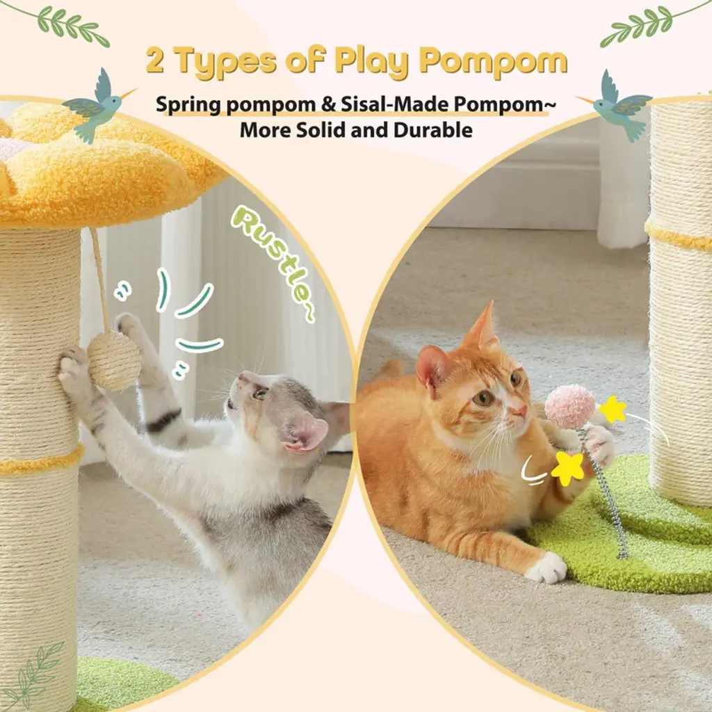 A beautiful gift for your furry family, this unique flower designed Cat Tree provides a comfortable space for your cat to play and sleep. The 5.5-diameter cat scratch post takes care of the cat's nail health and meets daily scratching needs. Increase the double base to ensure long-term stable use. Two toy balls bring joy to your cat, and you can remove them as needed to become a great interactive toy. In addition, this cute flower cat bed is detachable and washable. Create a warm and joyful space for your furry family.Features: