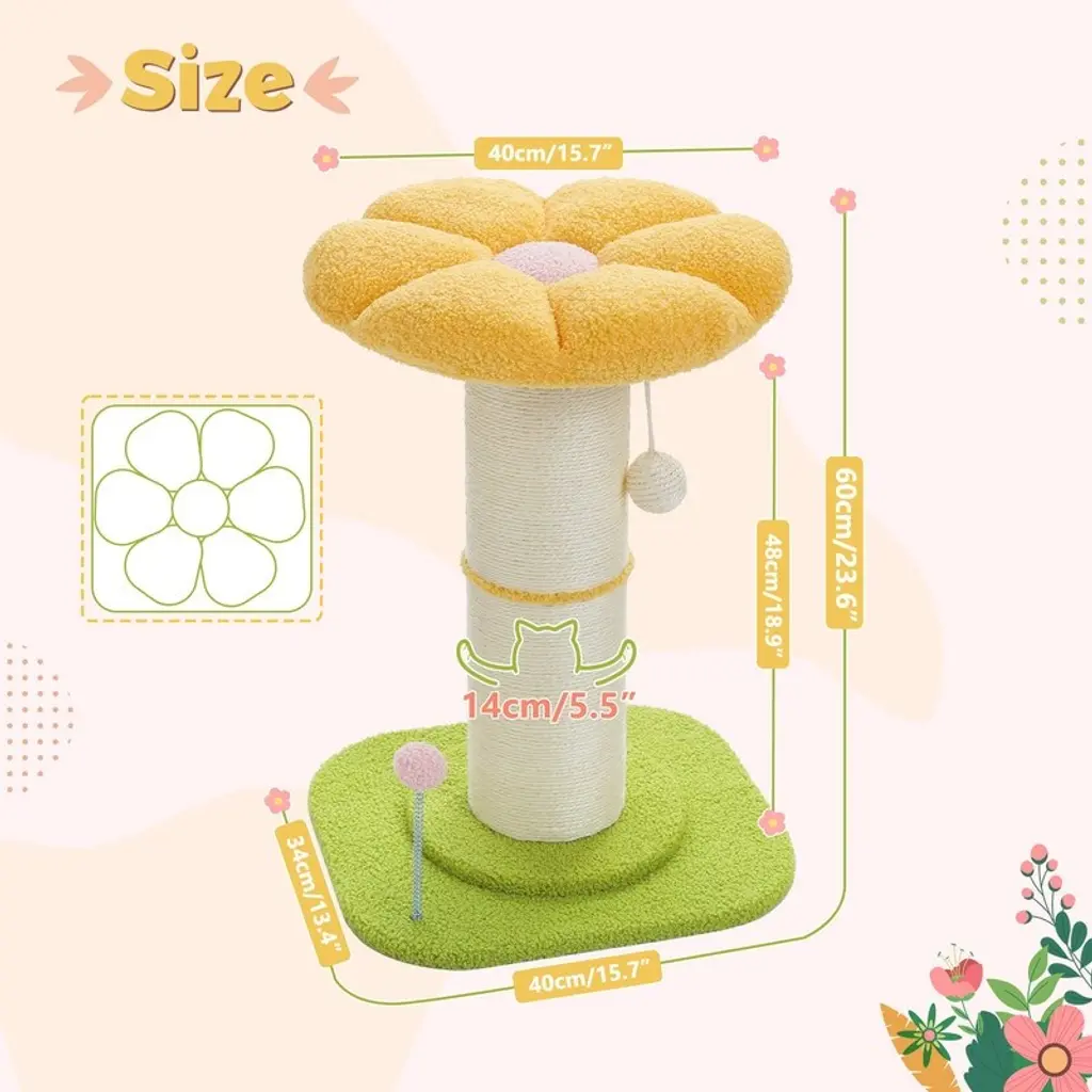 Flowers Small Cat Tree,cat Scratching Post With High Cat Scratching Board,removable Flower Cat Bed - Yellow