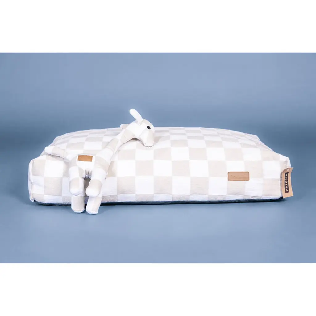 The Giraffe dog toy by Finnish brand PAIKKA is sure to bring joy to both pups and their humans – soft yet durable, this gentle-toned giraffe invites play while adding a charming touch to your home decor. The Giraffe toy is machine washable and measures 17.72 in (45 cm) in total length. Made in Europe, this high-quality dog toy is covered in thick, hard-wearing upholstery fabric and filled with polyester made from recycled plastic bottles. Remember that your doggie's teeth may be surprisingly strong – be sure to take away any damaged toys immediately.