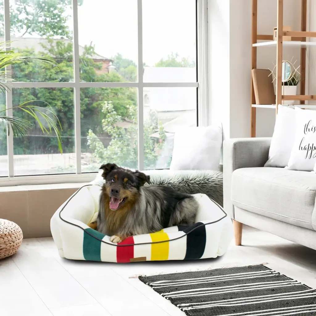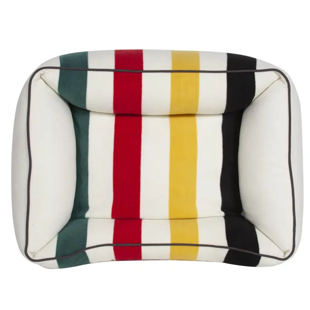 Inspired by vintage patterns, this collection takes us on a journey of the beautiful landscapes of great Glacier National Park enjoyed by millions over the years. This product wraps your pet in style and comfort. Our beds feature 320GSM non-pill polar fleece in a one-piece construction, overstuffed with our recycled, high-loft MemoryFiber™ polyester fill for maximum support and comfort. All styles are branded with the “Warranted To Be A Pendleton” suede patch.