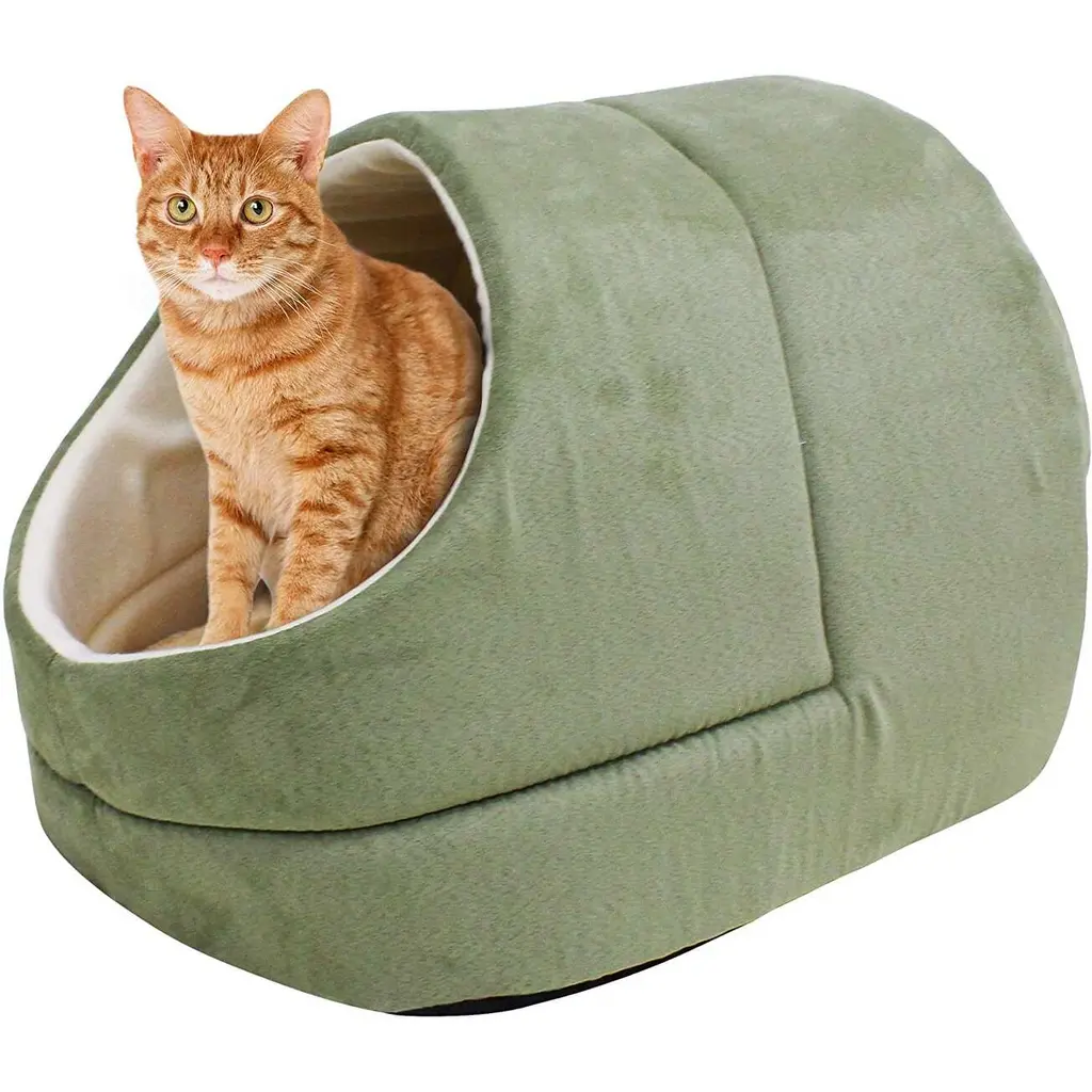 The GOOPAWS cave covered bed is made with a luxurious faux suede fabric and extra-thick cushions, then filled with 100% polyester to create a cushy, cozy cave your kitties or pups will love to curl up and snuggle against. Its soft and snuggly interior provides the perfect place to find privacy as well as to rest and relax. The waterproof and anti-skid base is designed to stand up to everyday use. Plus, it's machine washable, so you can make sure it's squeaky clean without hassle. • Cave-like design creates a feeling of safety and comfort as your pets nestle in to the covered bed. • Easy to clean and machine washable for easy, stress-free cleaning. Simply wash on the gentle cycle with cold water. • Waterproof and anti-skid base is durable enough for everyday use. • Designed to fit most kitties and some small dogs. This cave will turn any living space into a dream hideaway.