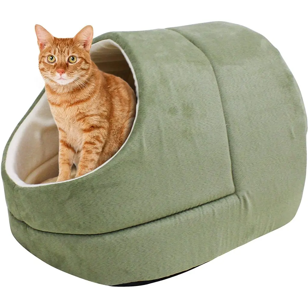 Goopaws Cave Covered Cat & Small Dog Bed - Sage Green