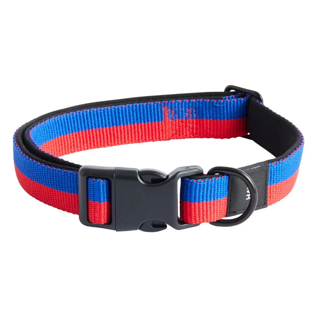 HAY's Dogs collar is made from durable recycled polyester and colored in vibrant shades of red and blue to complement the stylish look of your furry friend. The dog collar pairs perfectly with leashes from the HAY Dogs collection – get a matching leash in the same shade or try mixing and matching different colors together! HAY Dogs is HAY's charming collection designed especially for your doggie friends by Danish fashion brand Holly Golightly. The collection includes everything your puppy pal could ever dream of: collars and leashes to make walks easier, dog beds for leisure naptime and colorful scarves so your four-legged companion doesn't have to compromise on its style on any occasion. The collection is suitable for all doggos, regardless of size or breed.