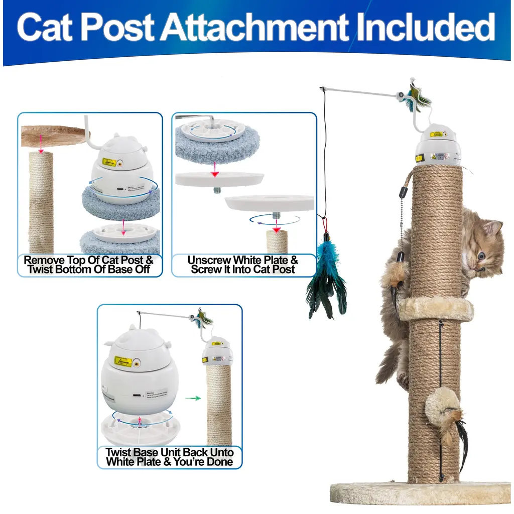 Interactive Laser & Motion Cat Toy - 4-1 Cat Games, 3 Speeds - Hide & Seek, Wand Teaser, Chasing, Laser - White - Regular