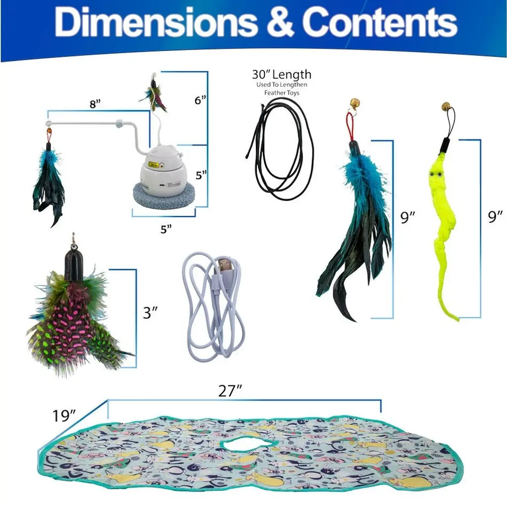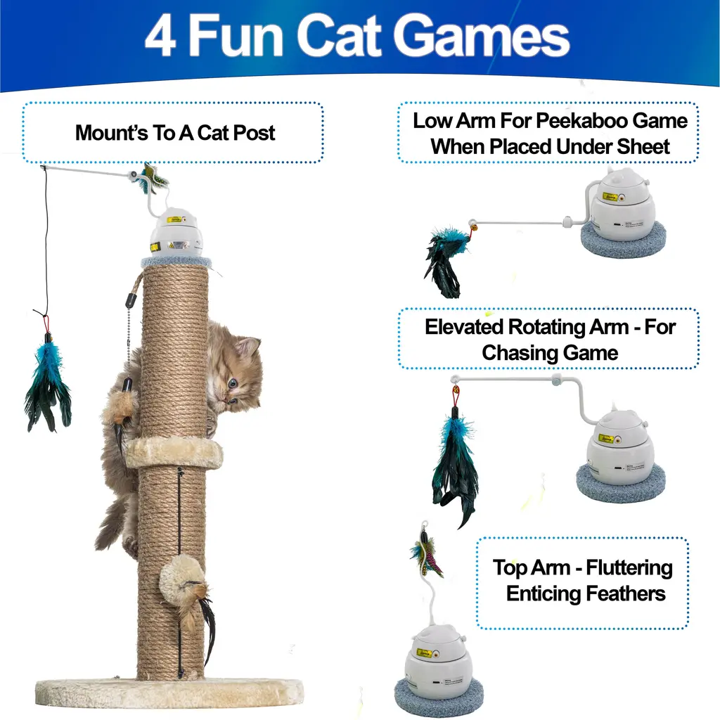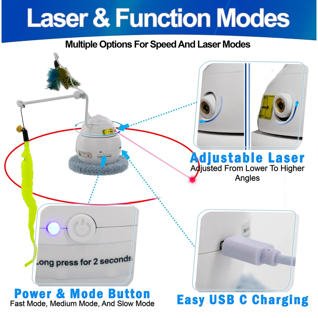 Engaging Interactive Cat Toys for Indoor Fun Discover the joy of interactive play with your feline companion using the 5 Star Super Deals Interactive Cat Toy. This innovative toy integrates a laser toy, peekabo game, and a moving feather wand into one dynamic device, designed specifically for indoor cats. With its three-speed settings, it caters to the playful spirit of kittens and the more measured pace of older cats alike, ensuring your pet stays engaged, active, and mentally stimulated within the comfort of your home.