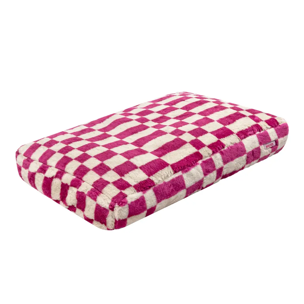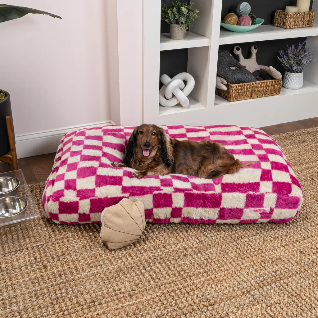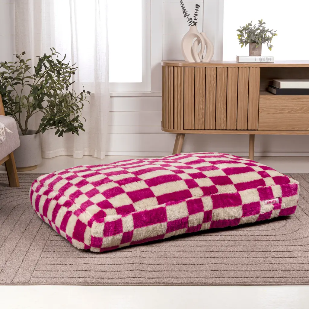 Mabel Designer Modern Ultra Soft Reversible Plush Rectangular Pet Bed With Washable Cover - 35 X 23 X 7.5 - Raspberry Check