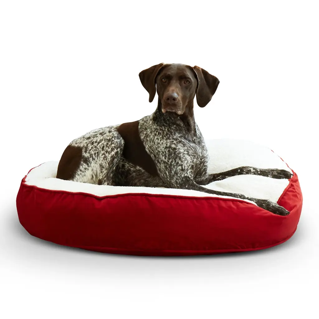 The Happy Hounds Milo Tufted Square Dog Bed is a premium pillow style bed with plenty of space for your pet to sprawl out for a long, cozy nap. Its heavy-duty polyester fabric features a stylish basketweave pattern, and a sewn-in handle for easy carrying. A tufted construction prevents fill from shifting and bunching. The Milo's reversible design allows for longer use between cleanings. Its removeable cover is machine washable, and features a hidden zipper to prevent chewing. This bed is filled with a plush, 100% post-consumer recycled plastic poly-fiber fill. Shell is made in China, cushion is filled and finished in the USA. Cushion dimensions are +/- 2 inches. Please note product will arrive in a slightly compressed state; please allow a few days for product to expand to final size listed in description.Available in 3 sizesAvailable in Cobalt, Moss, Scarlet, Black, Cement, and CreamDurable, double-sewn edges feature decorative flangeSewn-in handle for easy transportReversible designRemovable, washable coverIncludes 3 plush, channel insertsPillow style bedLarge bed dimensions: 40 in. W x 40 in. LMedium bed dimensions: 32 in. W x 32 in. LSmall bed dimensions: 24 in. W x 24 in. L