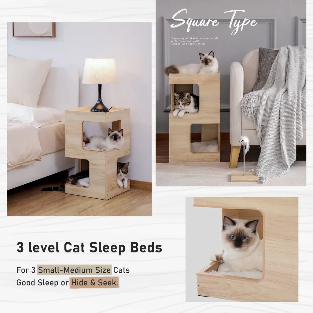 Modern Indoor Cat Tree Cat Condo With Free Cat Toy, Scratching Pad And Removable Soft Mats - Beige