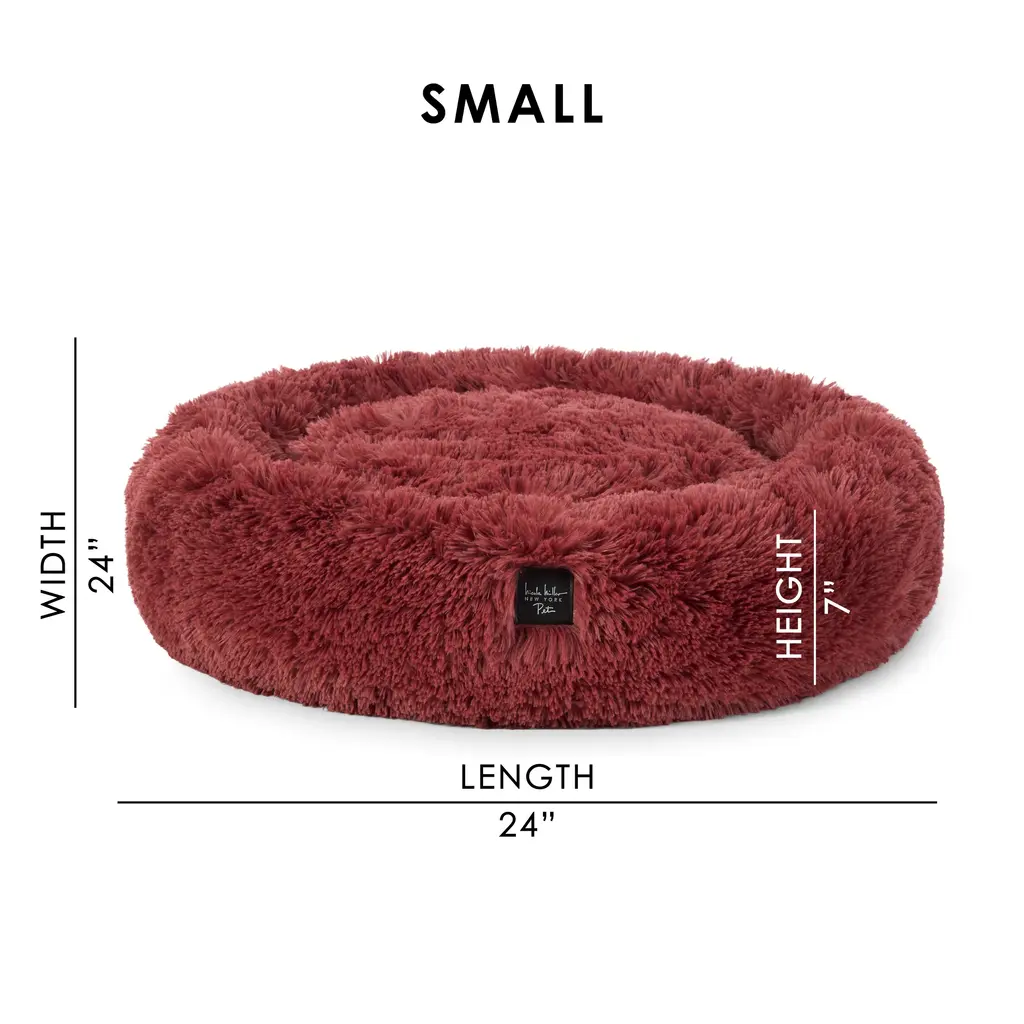 Nicole Miller New York Pet Ellie Fuzzy Solid Donut Pet Bed Gold Round Bed - 23.5"x7" - Burgundy Rose