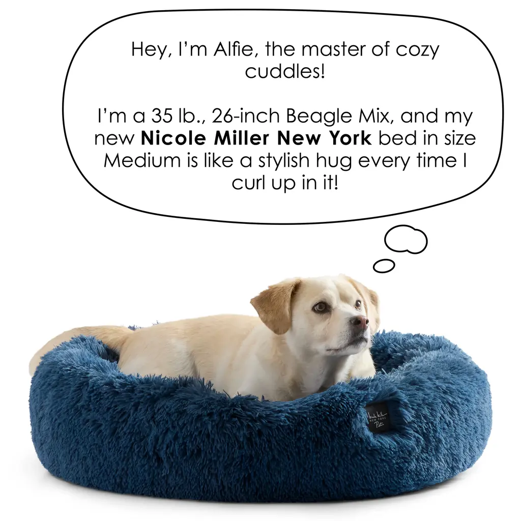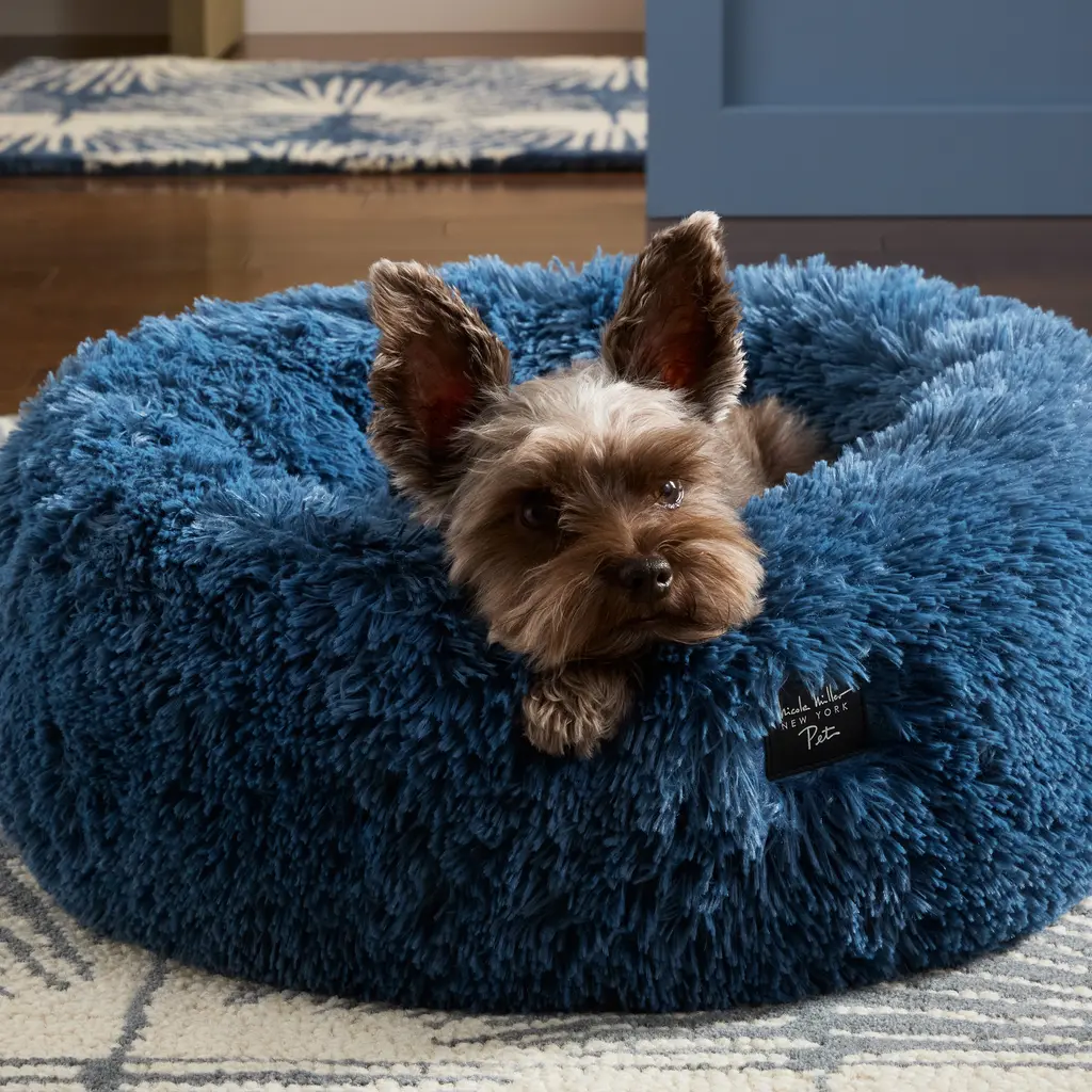 Upgrade your pet's comfort with the Nicole Miller New York Pet Ellie Fuzzy Donut Bed, designed for optimal support and coziness in chic, modern colors. Crafted with high-quality, durable materials, this bed offers the perfect blend of softness and stability, making it ideal for pets of all sizes. Provide a cozy spot for your pet to lounge in this anxiety reducing donut bed with super plush faux fur lining and comfortable center pillow. Stylish and functional, this pet bed is water repellent, 100% machine washable and includes a sturdy non-slip backing that helps to keep this bed clean and securely in place. Perfect for dogs, cats, and other pets, this pet bed is a must-have for any pet owner looking to give their furry friend the ultimate lounging experience. Standard 100 by Oeko-Tex Certified.