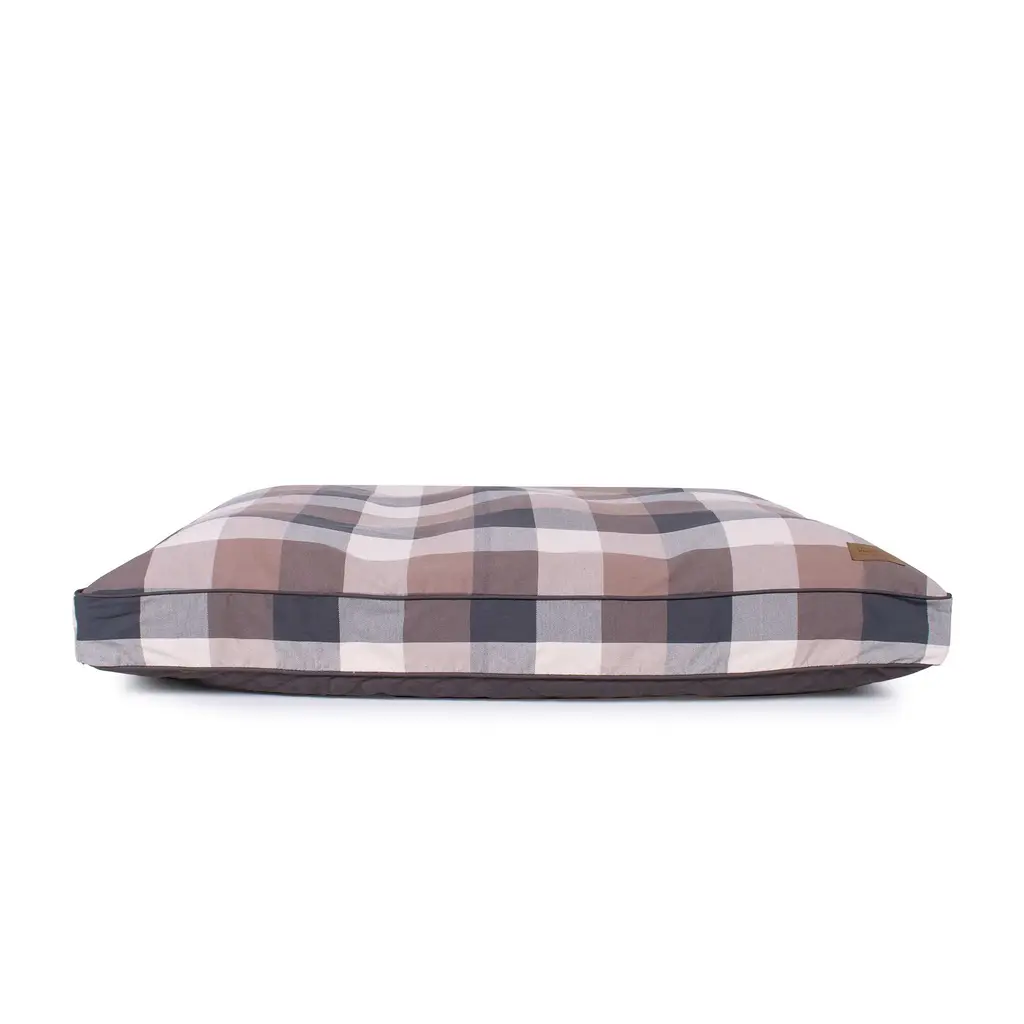If you’re mad for plaid, the Pendleton Block Plaid Napper Dog Bed is for you. A black and tan plaid adorns this ultra comfy bed. On the inside, it features recycled high-loft MemoryFiber™ polyester fill. Plus, the removable cushion cover is machine washable. A casual bed for everyday comfort! This is a great bed for dogs on the go! Easily travels along for the ride camping, to a friend’s house, or in the car! Also available in a natural color way.Features:Sizes available: