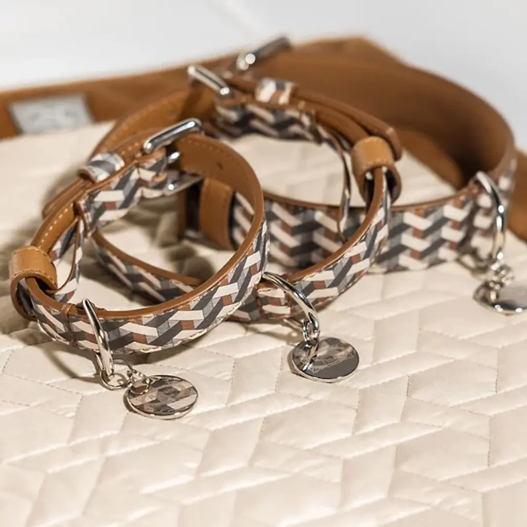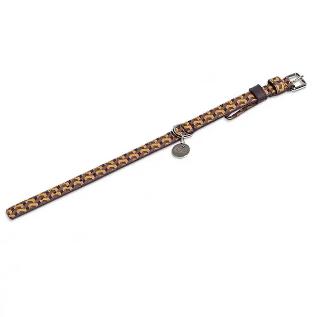 The Pet Collar from Poltrona Frau offers a refined blend of durability and style. Available in Pelle Frau leather and strong Jacquard-weave fabric with leather loops, each collar is accompanied by nickel-plated brass rings and a polished nickel zamak tag. It's designed by the Poltrona Frau Style & Design Centre and features an adjustable fit with a secure lock and a fixed loop, and made in Italy. A sturdy D-ring allows for easy leash attachment, while a tear-resistant inner reinforcement ensures lasting strength.