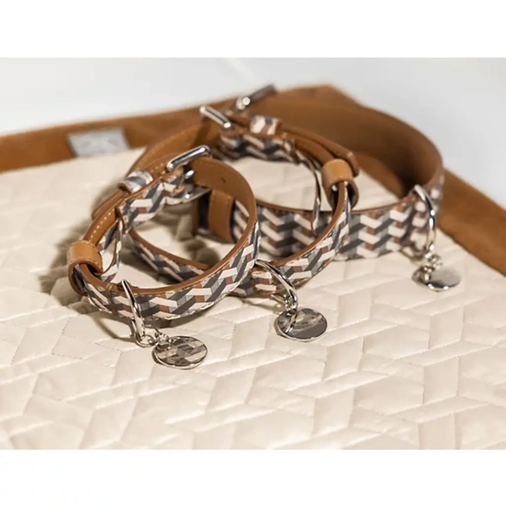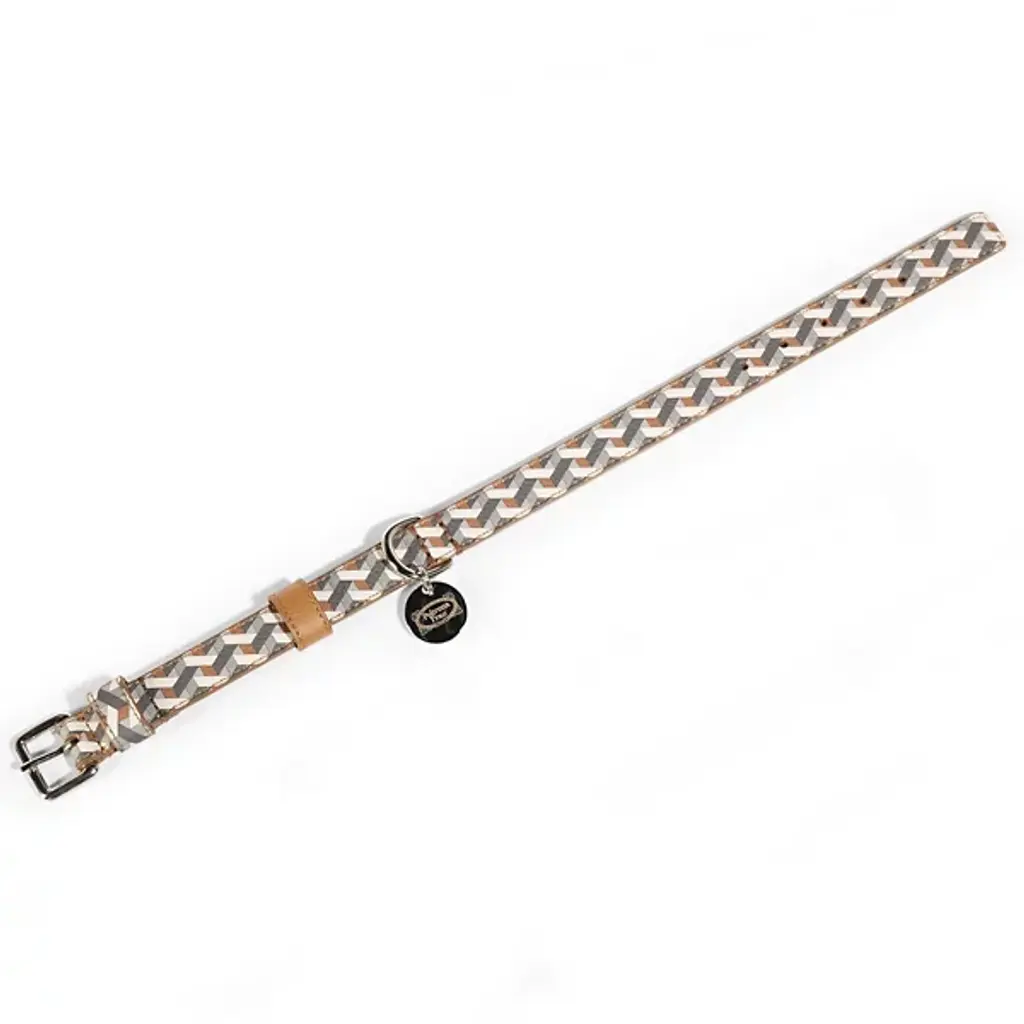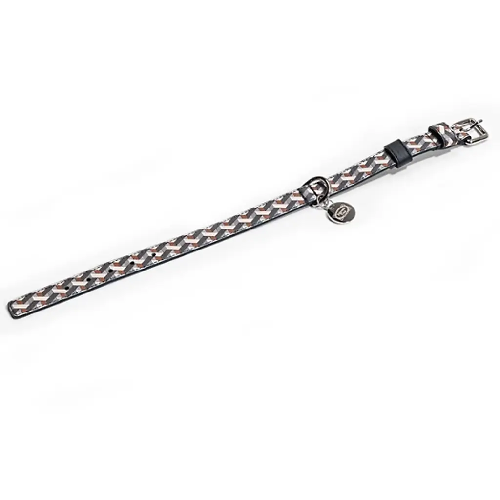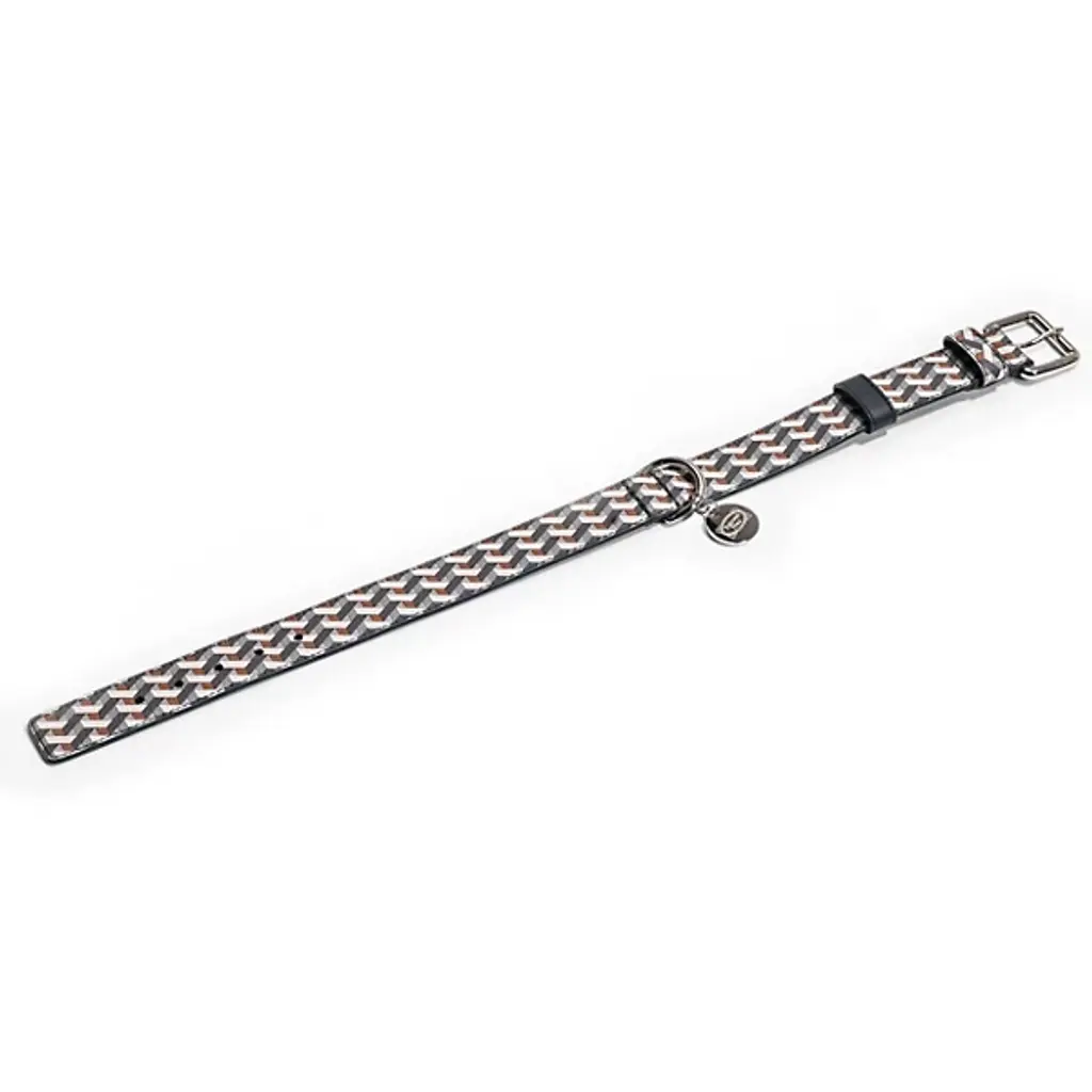 The Pet Collar from Poltrona Frau offers a refined blend of durability and style. Available in Pelle Frau leather and strong Jacquard-weave fabric with leather loops, each collar is accompanied by nickel-plated brass rings and a polished nickel zamak tag. It's designed by the Poltrona Frau Style & Design Centre and features an adjustable fit with a secure lock and a fixed loop, and made in Italy. A sturdy D-ring allows for easy leash attachment, while a tear-resistant inner reinforcement ensures lasting strength.