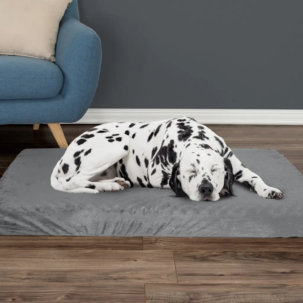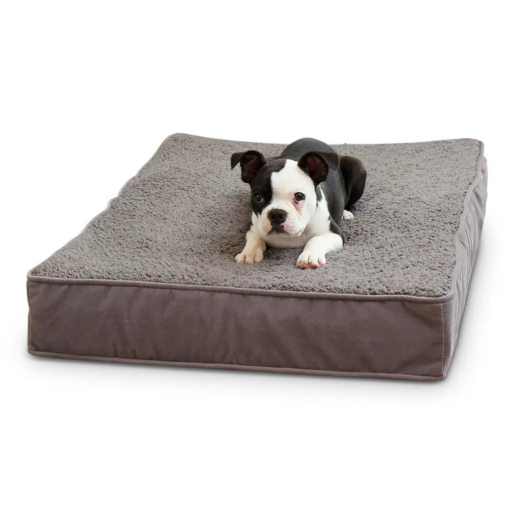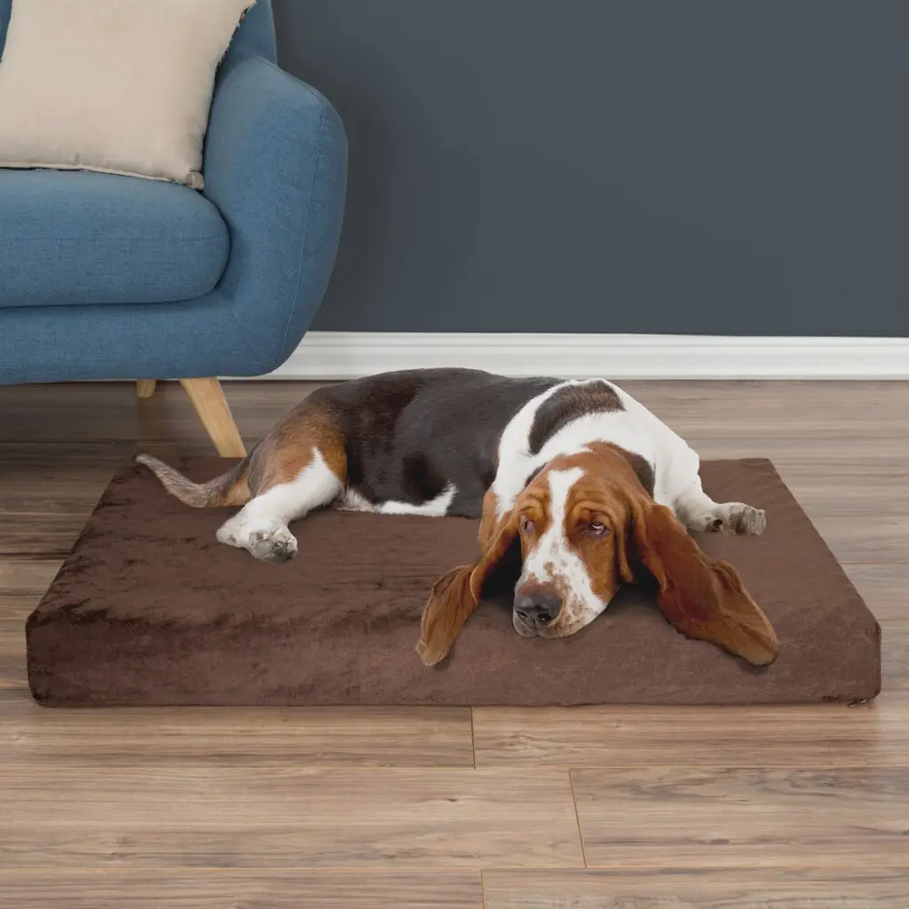 Give your pet a comfy, rejuvenating place to sleep with this orthopedic pet bed. Plush layers of memory foam and egg crate foam combine to provide comfort and support by distributing body weight to alleviate pressure points, reducing aches and pains from arthritis, muscle stiffness, and joint and hip dysplasia. The machine washable cover is soft and easy to clean.Features:Made of memory foam and polyesterMachine washable cover4-inch thick foam insert with 2 inches of memory foam and 2 inches of egg crate foamAvailable in brown, tan, gray or navySee option drop down for available sizes