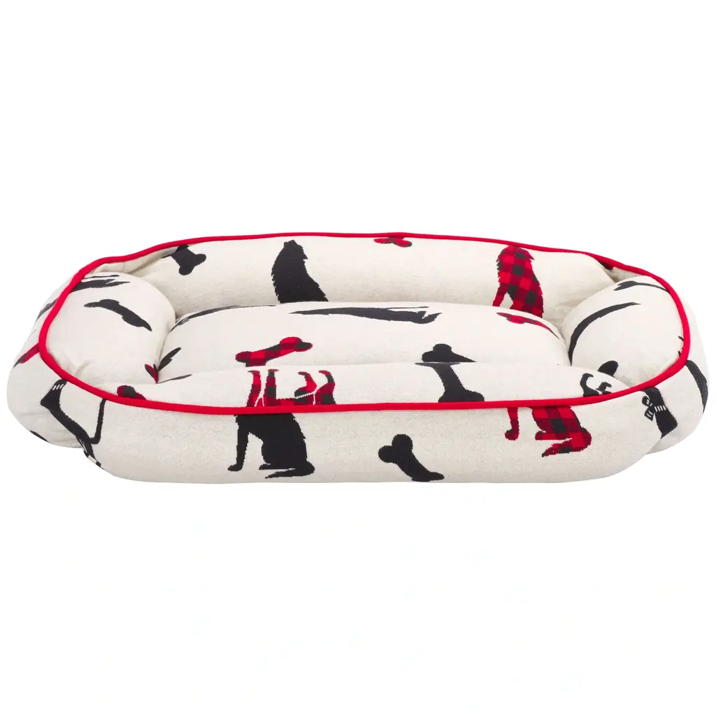 We love our four-legged friends and consider them to be part of the family! Our love and appreciation for our pets inspired us to create something exceptionally special, just for them. Scalamandré is pleased to introduce luxury dog beds, featuring iconic fabrics from The House of Scalamandré! Each bed has a removable cover for easy dry cleaning, features an orthopedic insert for comfort, as well as high memory bolsters. Offered in two sizes for small and medium dogs. Every pet deserves an upgrade to our chic dog beds! Returned dog beds must be new and unused. For health and safety reasons we can not accept returns for used merchandise with no exceptions.- FAUX LEATHER BOTTOM- INDOOR/OUTDOOR FABRIC COVER- ZIPPERED REMOVABLE COVER- ORTHOPAEDIC FIBER BOTTOM INSERT- HIGH-MEMORY 100% POLYESTER FIBER FILL BOLSTER- STRONG YKK ZIPPER- BOLSTERS: HAND WASH ONLY- FOR DOGS UP TO 25 LBS- DIMENSIONS - INNER: 19"L X 13"W- DIMENSIONS - OUTER: 26"L X 18"W X 7"H- INSERTS NOT INTENDED FOR OUTDOOR USE