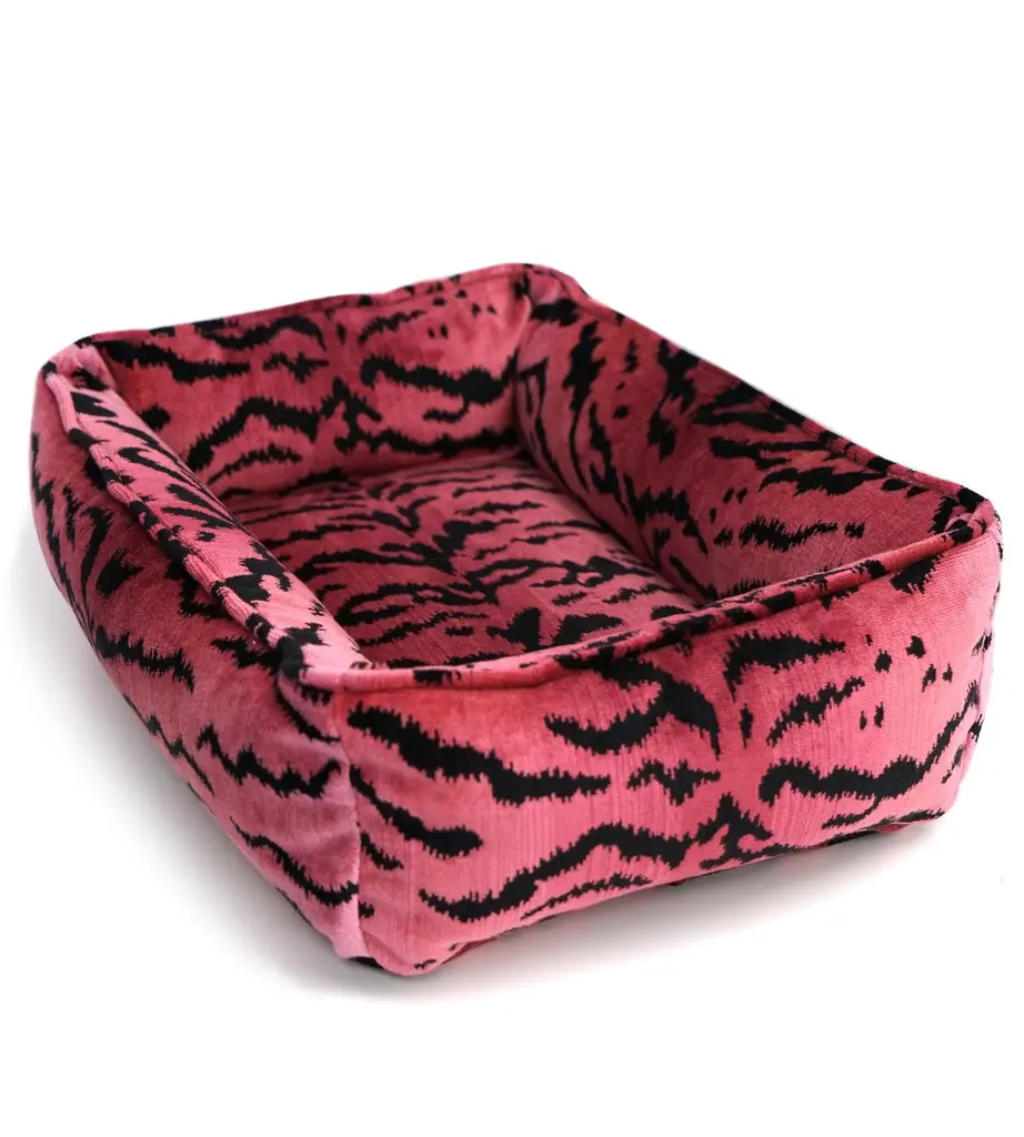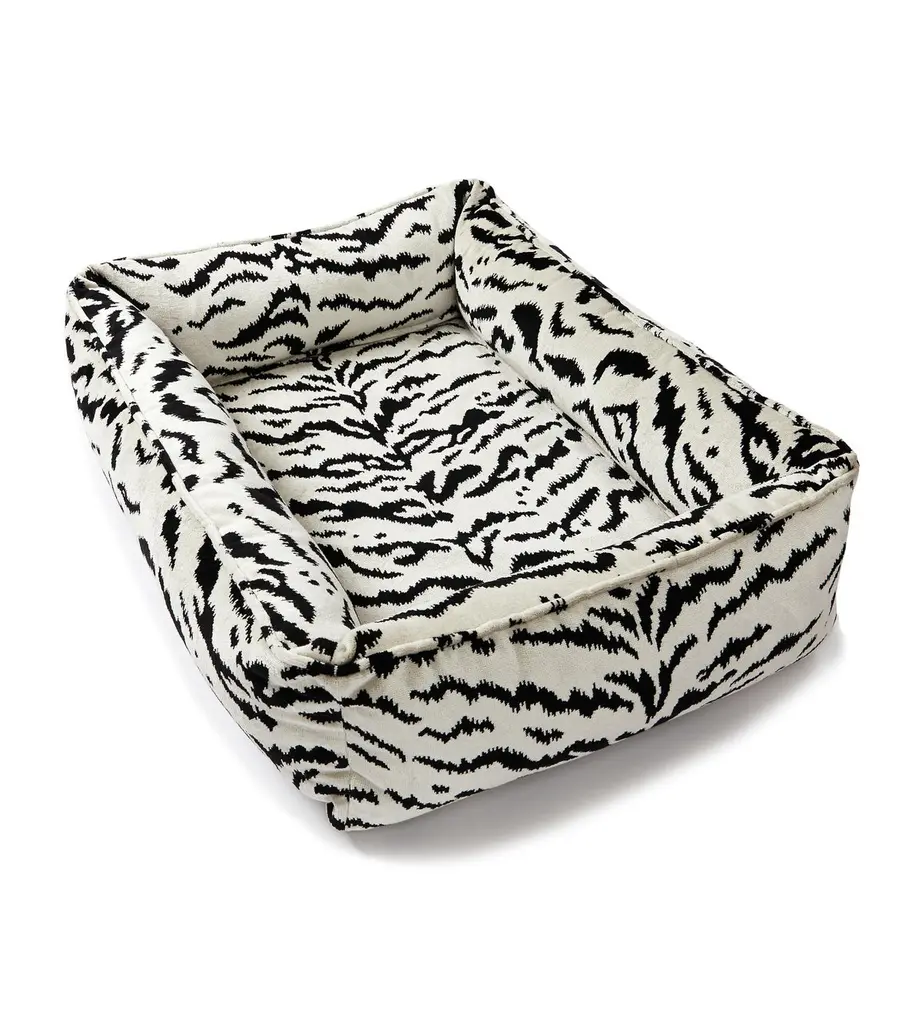 We love our four-legged friends and consider them to be part of the family! Our love and appreciation for our pets inspired us to create something exceptionally special, just for them. Scalamandré is pleased to introduce luxury dog beds, featuring iconic fabrics from The House of Scalamandré! Each bed has a removable cover for easy dry cleaning, features an orthopedic insert for comfort, as well as high memory bolsters. Offered in two sizes for small and medium dogs. Every pet deserves an upgrade to our chic dog beds! Returned dog beds must be new and unused. For health and safety reasons we can not accept returns for used merchandise with no exceptions.- FAUX LEATHER BOTTOM- ZIPPERED REMOVABLE COVER- ORTHOPAEDIC FIBER BOTTOM INSERT- HIGH-MEMORY 100% POLYESTER FIBER FILL BOLSTER- STRONG YKK ZIPPER- BOLSTERS: HAND WASH ONLY- FOR DOGS UP TO 50 LBS- DIMENSIONS - INNER: 25"L X 16"W- DIMENSIONS - OUTER: 36"L X 23"W X 9"H