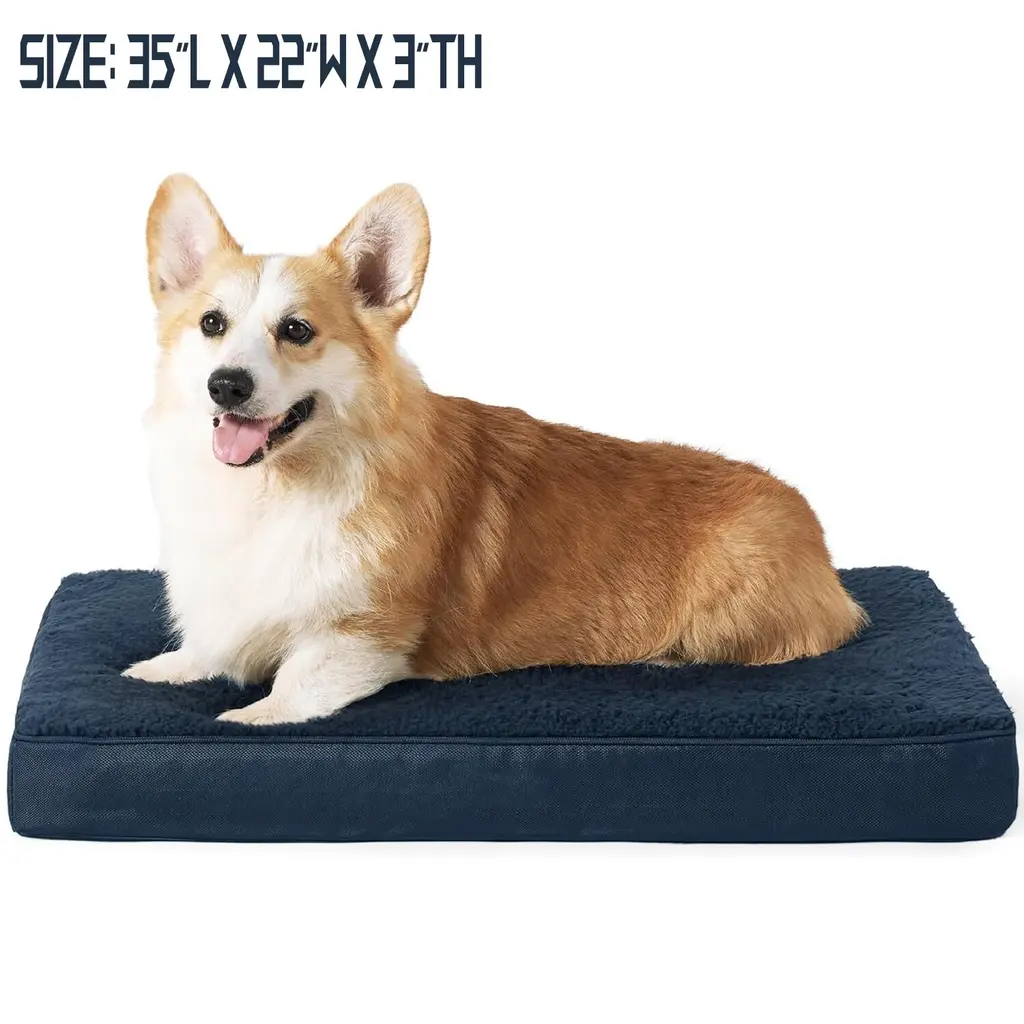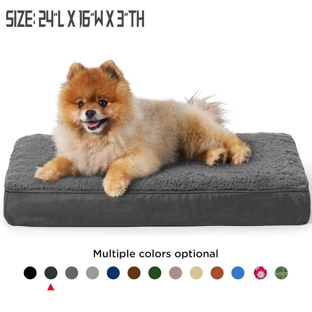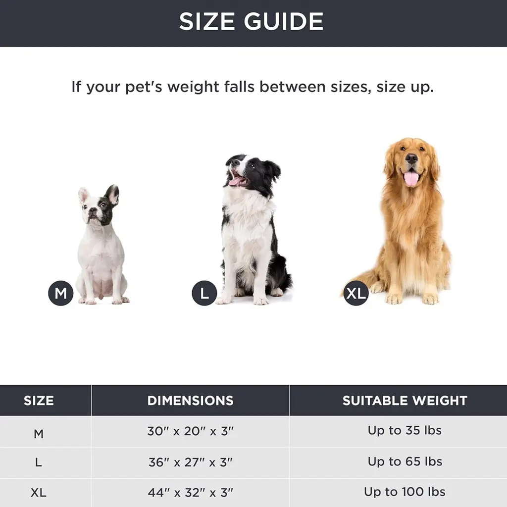 All-Seasons Bed: The two-sided design features warm and cozy sherpa with a reverse side of cool and soft Oxford fabric. Durable and suitable for all-season use¡ªkeep your dog cool in summer and warm in winter for increased comfort. Designed to give your pet unparalleled support for a deep, dreamy sleep. High-density egg-crate foam distributes weight evenly and provides the perfect amount of pressure relief to reduce joint pain and arthritis discomfort. The classic pet bed mattress design gives your fluffy friend plenty of room to sprawl out and get cozy in any position. Easy to carry and ideal for use indoors and outside, in a crate, in your car, or wherever life takes you.Featuring an easy-to-remove, durable, and stain-resistant cover that makes deep cleaning a breeze. Simply machine wash and tumble dry. SIZE: 20.0"L x 15.0"W x 3.0"Th, Suitable for Pet or Cats Up to 15 lbs. SIZE: 24.0"L x 16.0"W x 3.0"Th, Suitable for Pet or Cats Up to 20 lbs. SIZE: 30.0"L x 20.0"W x 3.0"Th, Suitable for Pet or Cats Up to 35 lbs. SIZE: 35.0"L x 22.0"W x 3.0"Th, Suitable for Pet Up to 50 lbs. SIZE: 36.0"L x 27.0"W x 3.0"Th, Suitable for Pet Up to 65 lbs. SIZE: 41.0"L x 29.0"W x 3.5"Th, Suitable for Pet Up to 90 lbs. SIZE: 44.0"L x 32.0"W x 3.0"Th, Suitable for Pet Up to 100 lbs. SIZE: 54.0"L x 44.0"W x 4.0"Th, Suitable for Pet Up to 150 lbs.