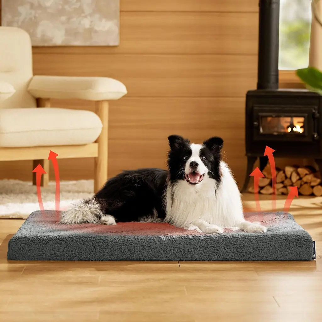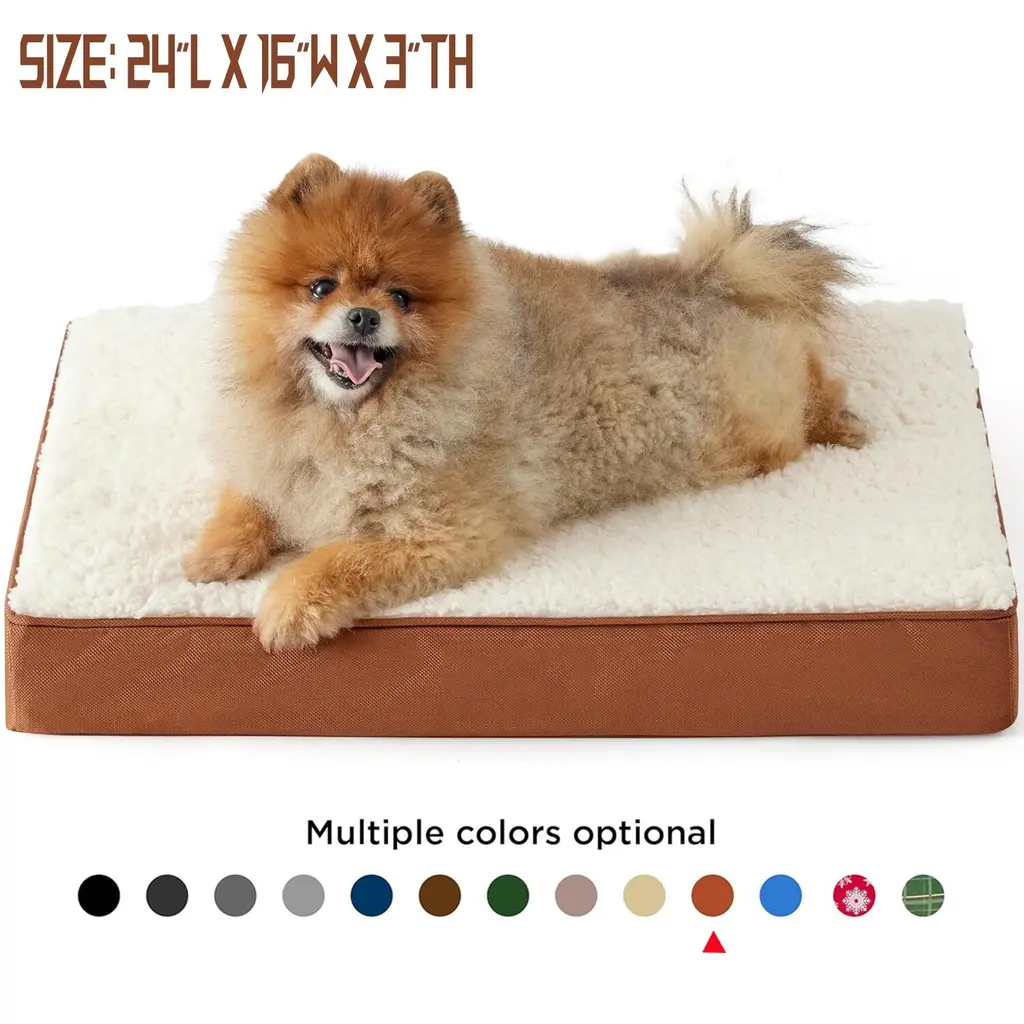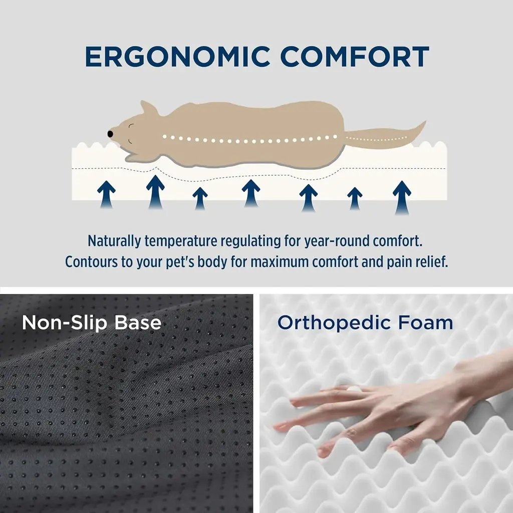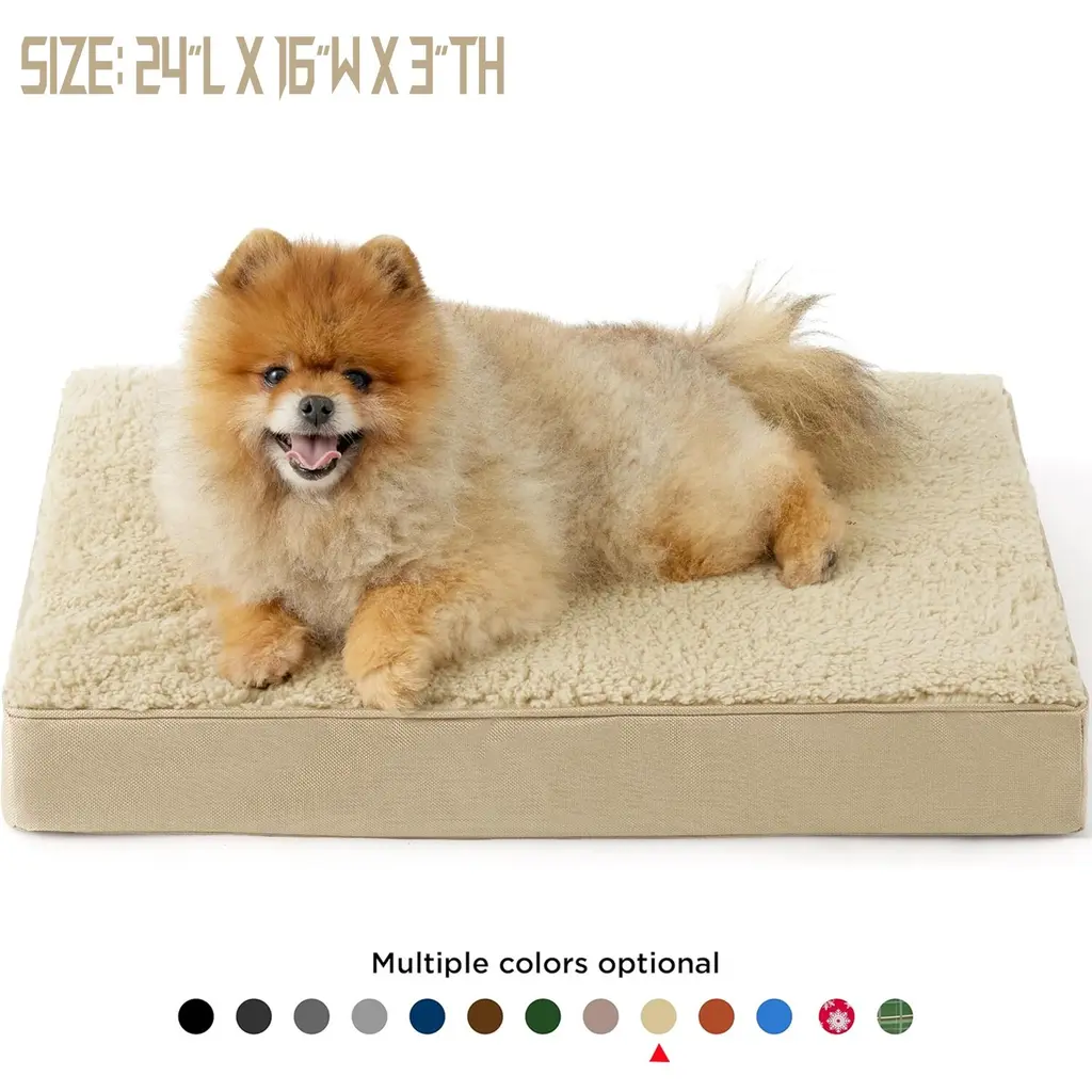 All-Seasons Bed: The two-sided design features warm and cozy sherpa with a reverse side of cool and soft Oxford fabric. Durable and suitable for all-season use¡ªkeep your dog cool in summer and warm in winter for increased comfort. Designed to give your pet unparalleled support for a deep, dreamy sleep. High-density egg-crate foam distributes weight evenly and provides the perfect amount of pressure relief to reduce joint pain and arthritis discomfort. The classic pet bed mattress design gives your fluffy friend plenty of room to sprawl out and get cozy in any position. Easy to carry and ideal for use indoors and outside, in a crate, in your car, or wherever life takes you.Featuring an easy-to-remove, durable, and stain-resistant cover that makes deep cleaning a breeze. Simply machine wash and tumble dry. SIZE: 20.0"L x 15.0"W x 3.0"Th, Suitable for Pet or Cats Up to 15 lbs. SIZE: 24.0"L x 16.0"W x 3.0"Th, Suitable for Pet or Cats Up to 20 lbs. SIZE: 30.0"L x 20.0"W x 3.0"Th, Suitable for Pet or Cats Up to 35 lbs. SIZE: 35.0"L x 22.0"W x 3.0"Th, Suitable for Pet Up to 50 lbs. SIZE: 36.0"L x 27.0"W x 3.0"Th, Suitable for Pet Up to 65 lbs. SIZE: 41.0"L x 29.0"W x 3.5"Th, Suitable for Pet Up to 90 lbs. SIZE: 44.0"L x 32.0"W x 3.0"Th, Suitable for Pet Up to 100 lbs. SIZE: 54.0"L x 44.0"W x 4.0"Th, Suitable for Pet Up to 150 lbs.
