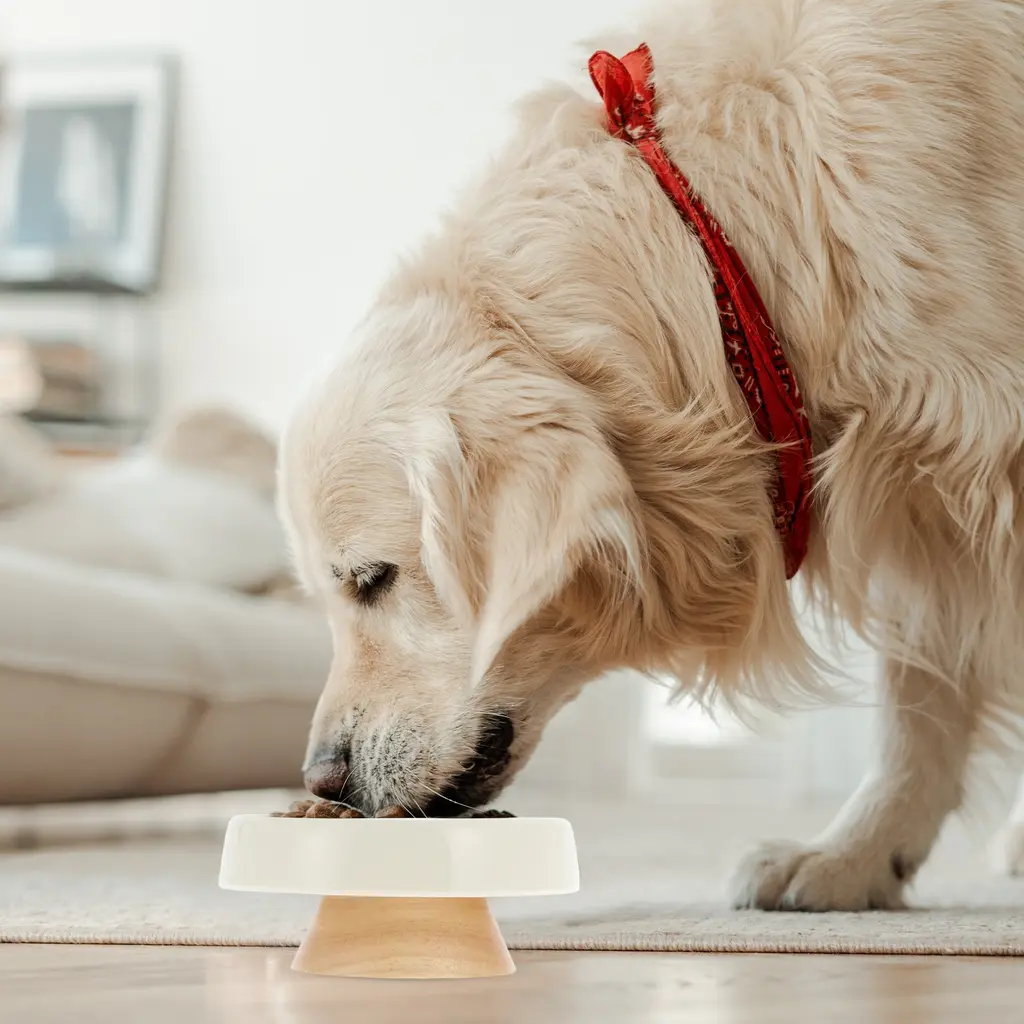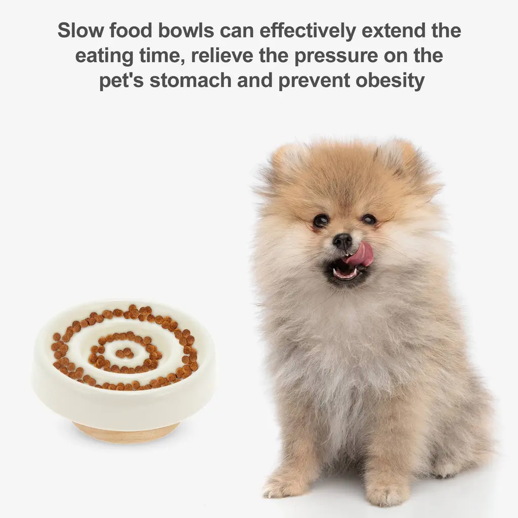 Slow Feeder Dog Bowls Ceramic Dog Bowls With Wooden Base Dog Slow Feeder - Apricot