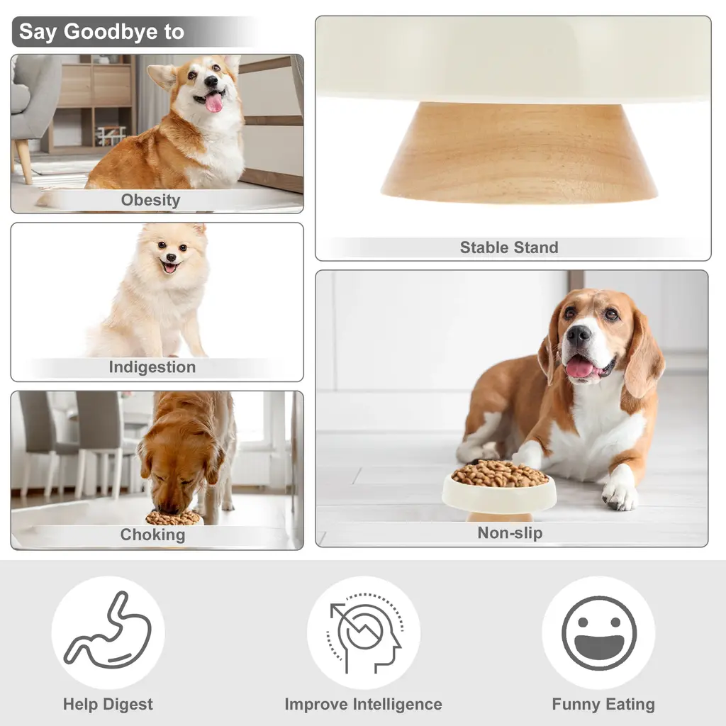 Features:These slow feeder dog bowls are crafted from quality ceramic, this bowl is, durable, and resistant to growth. Easy to clean, it helps keep your pet away from chin acne issues.This dog slow feeder bowl features a premium solid oak base, this bowl is heavy enough to prevent tipping and safeguards your pet's spines while eating.The rounded ring obstacle at the bottom of slow feeder dog bowls effectively slows down eating speed, scientifically improving your pet's eating habits. It offers moderate difficulty for an enhanced feeding experience.This large breed dog bowl prevents spillage and keeps floors clean during feeding sessions, suitable for cats, small dogs, and similar pets.Ideal for promoting good eating habits in pets, this dog food bowl combines quality materials, thoughtful design, and functionality for an improved dining experience.Specifications:Color: ApricotMaterial: Ceramic, WoodBowl Size: 14.5x3.3cm / 5.71"x1.3"(L*H)Overall Height: 6.7cm / 2.64"Package List: 1 Pc Slow Feeder Dog Bowl
