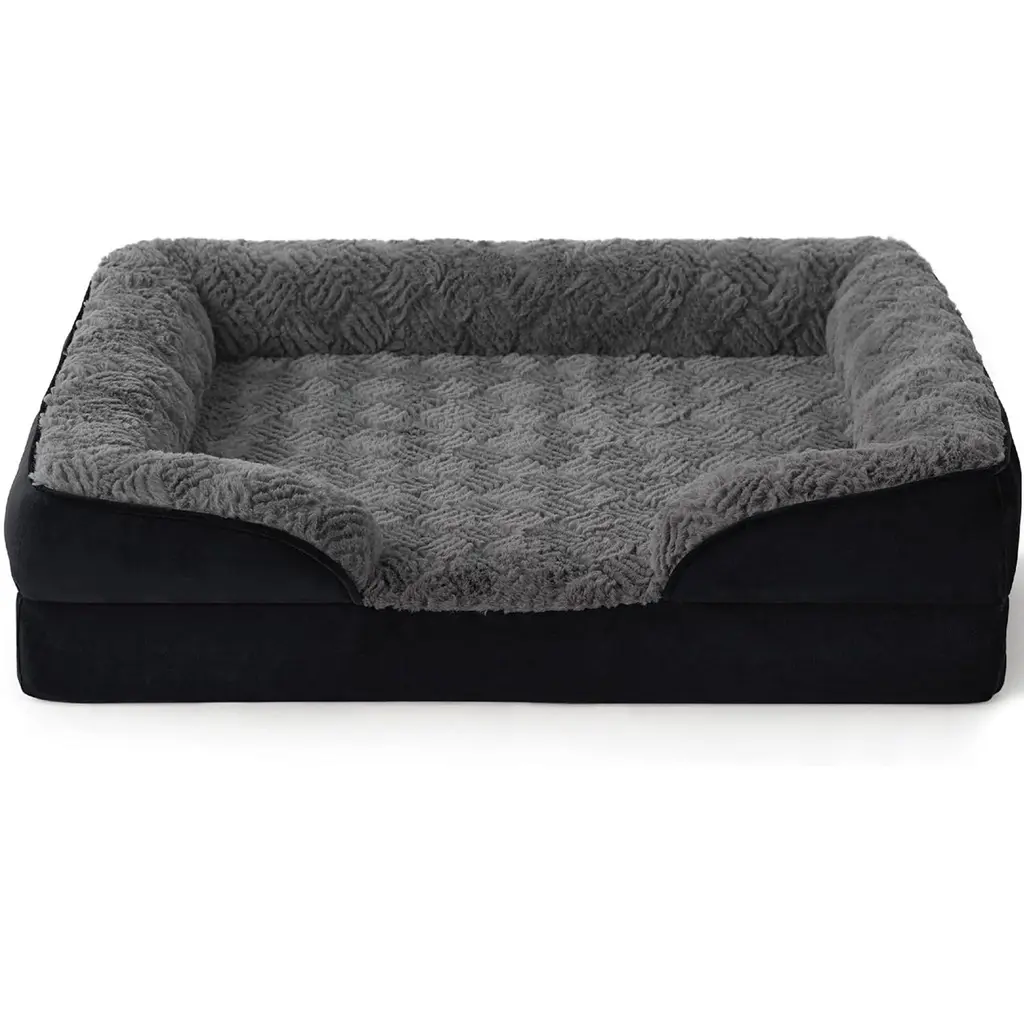 Our orthopedic dog sofa is designed to give your pet unparalleled support for a deep, dreamy sleep. High-density egg-crate foam helps distribute weight evenly and provides the perfect amount of pressure relief and joint support. The 4-sided bolster design promotes ultimate comfort and security, offering your pet a variety of cozy positions to snuggle. The cushioned bolster shape is deeply filled to support your pet’s head and neck for a more restful sleep. And the lowered entrance protects your pet's knees and promotes accessibility. The durable foam mattress is encased in a waterproof liner to fully protect the foam from spills, water damage, or accidents. Remove the zippered cover in seconds and machine wash for easy care.This supportive dog bed is wrapped in our velvety soft flannel fabric, offering soothing comfort that your furry friend will find cozy and relaxing.The non-skid bottom reduces slips and protects your dog.