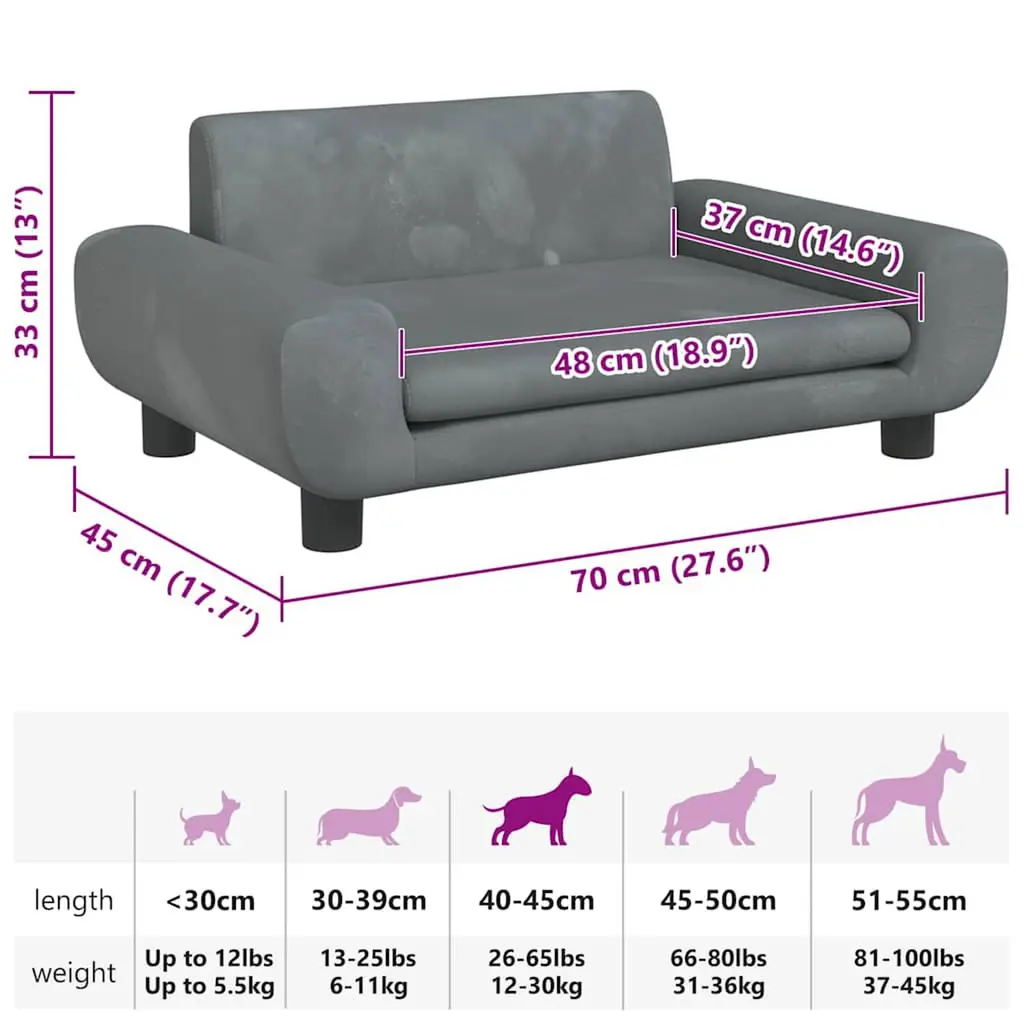 Give your furry friend a warm and comfortable place to relax with this dog bed!Comfortable and soft material: The pet sofa is padded with thick and soft foam and covered with velvet, providing enough support and superior comfort for your lovely pet to rest on it.Sturdy and durable frame: The solid pine wood frame ensures sturdiness and durability of the dog sofa. The four feet also add extra stability.Stylish design: This dog couch matches perfectly with any decor theme and is a great addition to your living room or bedroom.Note:Please measure the body length of your pet before purchasing.