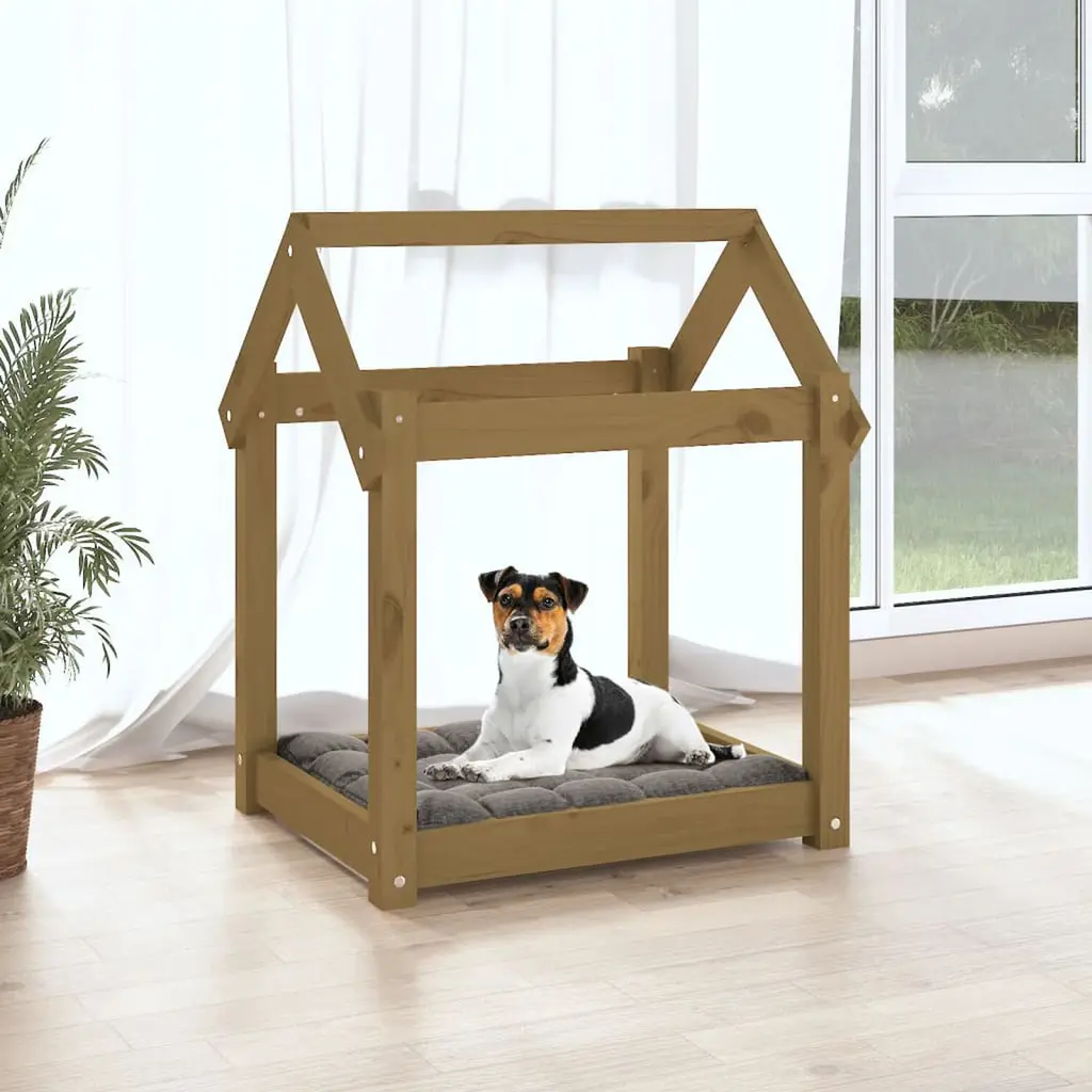 This minimalist dog bed blends style and comfort perfectly, making it a restful haven in your living room. Its honey brown solid pine wood not only looks great but also ensures it lasts, ideal for small and medium breeds. Whether your dog is napping or lounging, this bed provides a cozy and supportive space. Versatile Design: The simple design fits in with any home decor, adding style while prioritizing your pet's comfort.Comfortable Size: At 24.0 x 19.7 x 27.6 in, this bed has plenty of room for dogs to stretch out and relax.Stable and Supportive: The solid pine wood frame is sturdy and made to handle daily use, giving your pet a safe spot to rest.Scratch-Resistant Finish: The tough surface protects against wear and tear, keeping the bed looking fresh, perfect for lively pets indoors.Easy to Clean: Keep it spotless with minimal fuss – just wipe it down with a dry cloth.
