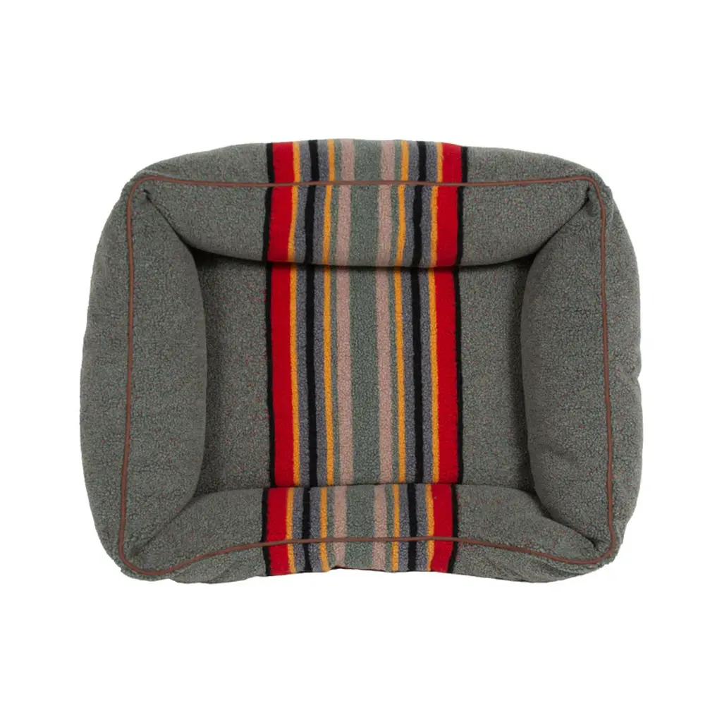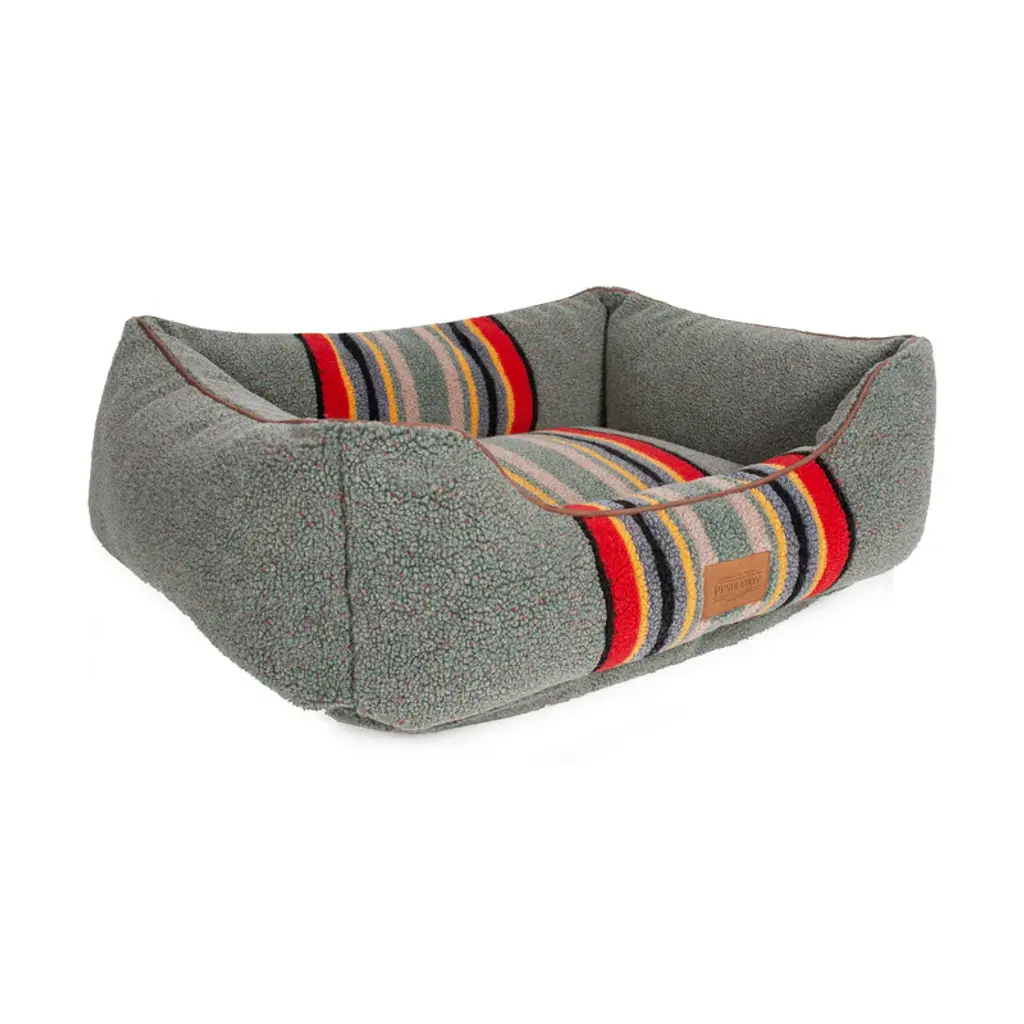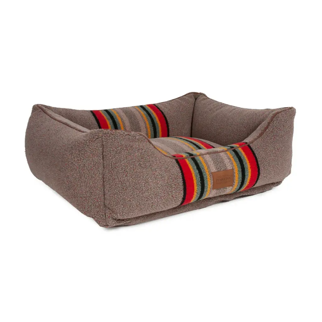 Designed for endless days of naps Cozy, comfortable, and oh-so-stylish, the Vintage Camp Kuddler from Pendleton Pets is the must-have design to ensure premium comfort for your four-legged friend. Featuring ajacquard knitted berber fabric cover with coordinating faux suede accents, this bed is overstuffed with recycled high-loft memory fiuber fill for premium support and comfort,. Easy to clean and machine washable for constant use, this bed is ideal for dogs 40-60 pounds in size, and is available in a variety of colorful designs ready to match or stand out as part of your interior design scheme. Pair with a fleece throw for additional warmth and your pet will be in heaven. Why We Love It: Features