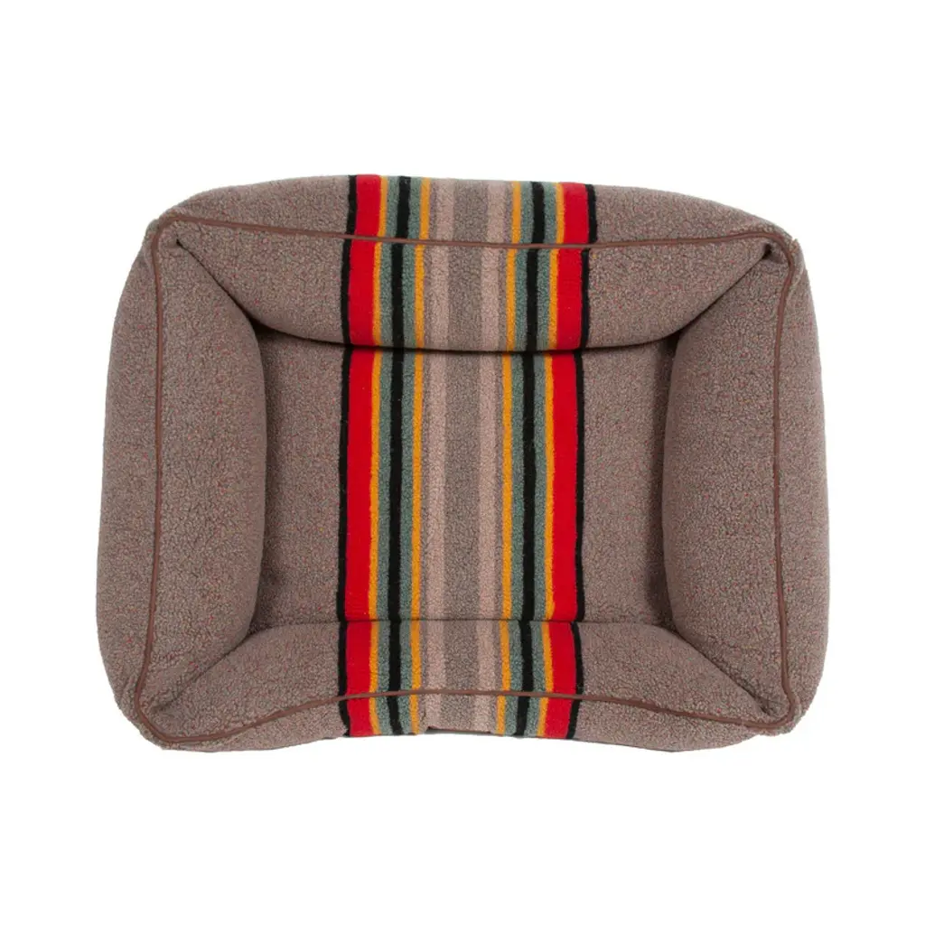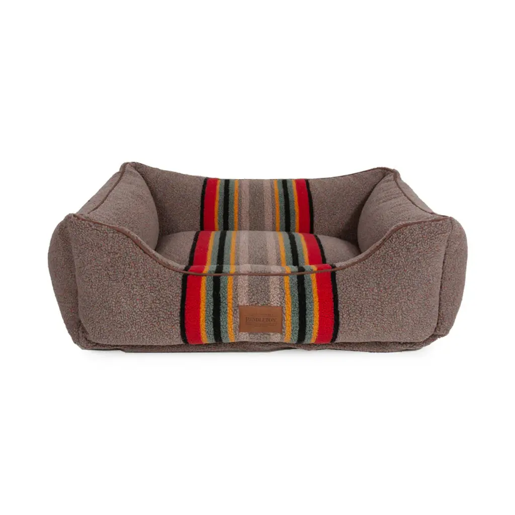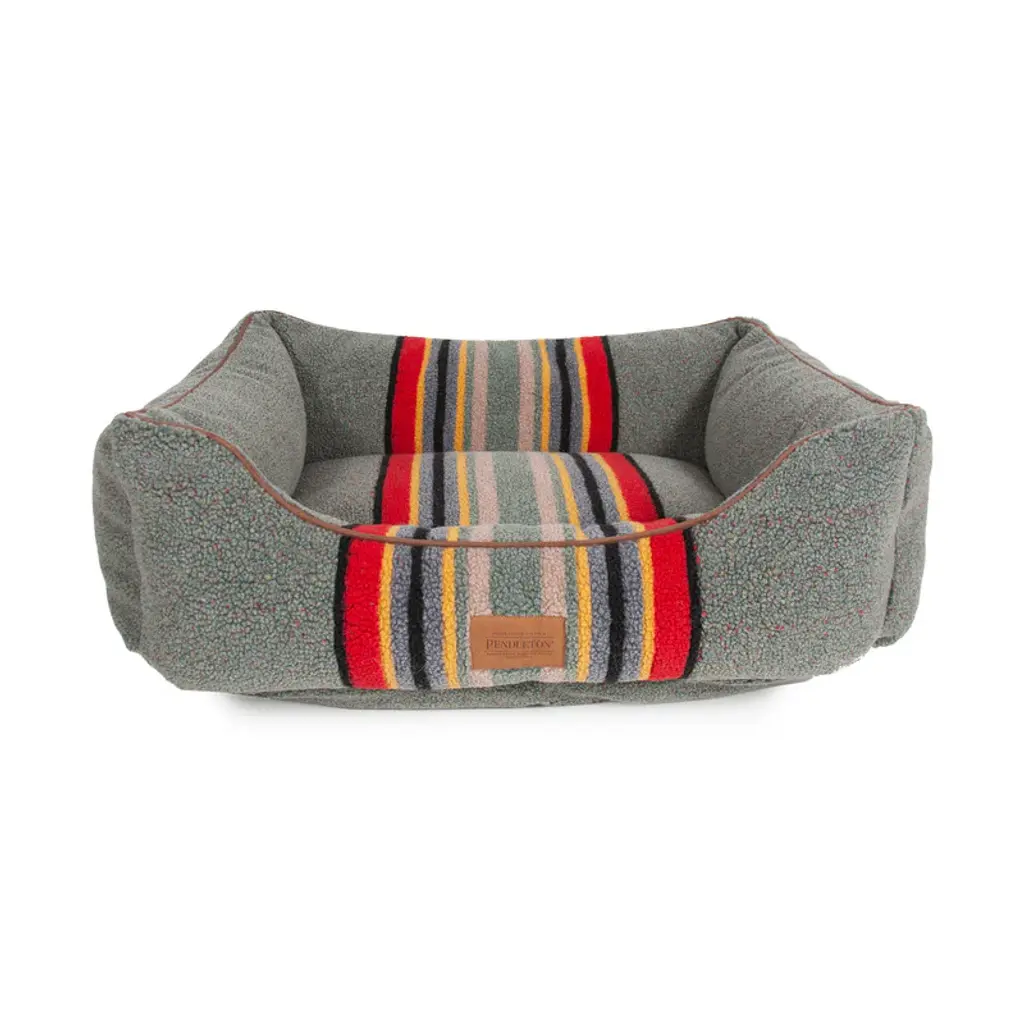 Designed for endless days of naps Cozy, comfortable, and oh-so-stylish, the Vintage Camp Kuddler from Pendleton Pets is the must-have design to ensure premium comfort for your four-legged friend. Featuring ajacquard knitted berber fabric cover with coordinating faux suede accents, this bed is overstuffed with recycled high-loft memory fiuber fill for premium support and comfort,. Easy to clean and machine washable for constant use, this bed is ideal for dogs 40-60 pounds in size, and is available in a variety of colorful designs ready to match or stand out as part of your interior design scheme. Pair with a fleece throw for additional warmth and your pet will be in heaven. Why We Love It: Features