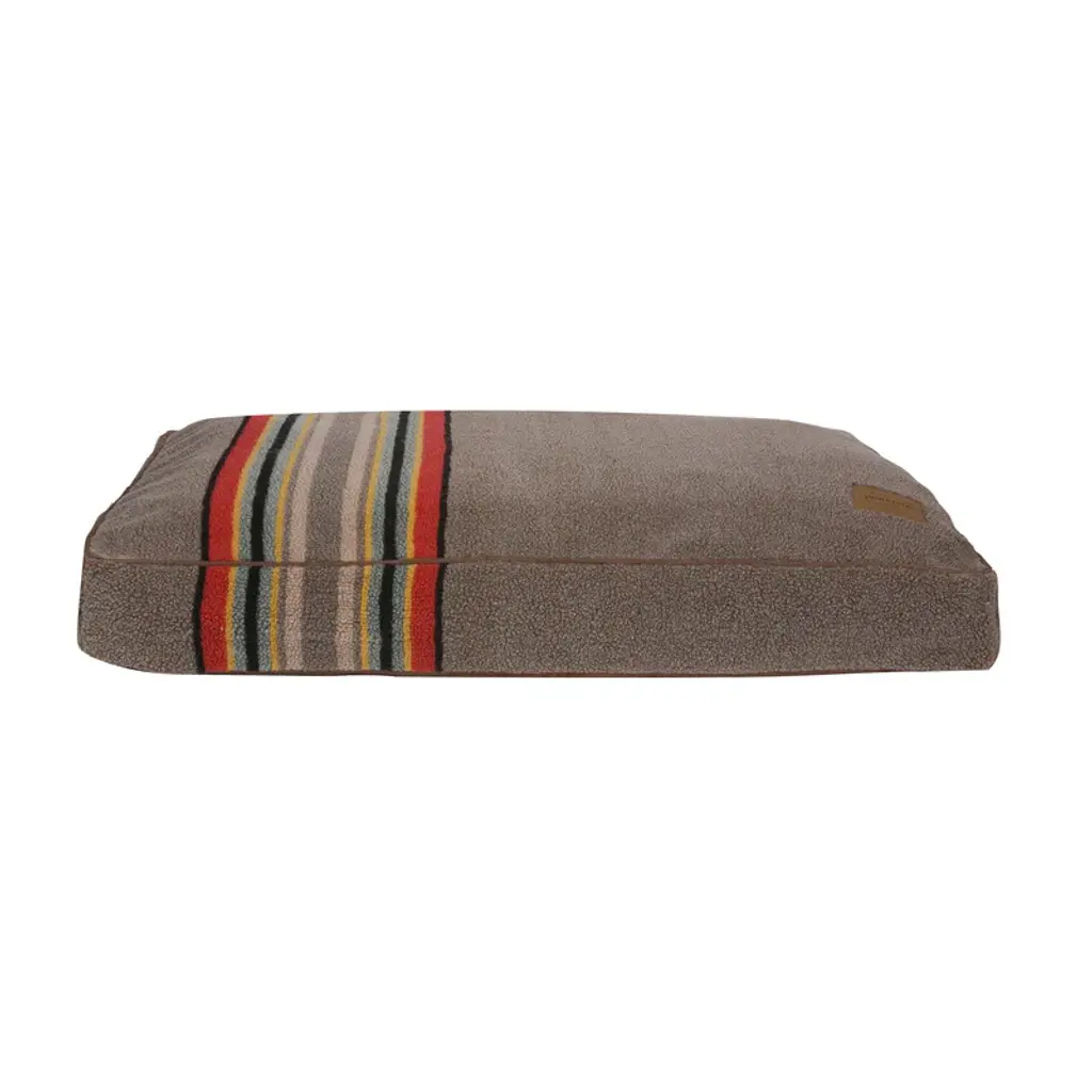 The Pendleton Pet Vintage Camp Collection features a jacquard knitted berber fabric with coordinating faux suede accents. The beds are overstuffed with recycled high-loft memory fiberTM polyester fill and feature zippered removable covers that are machine washable. Coats & beds are branded with the “Warranted To Be A Pendleton” suede patch. Features