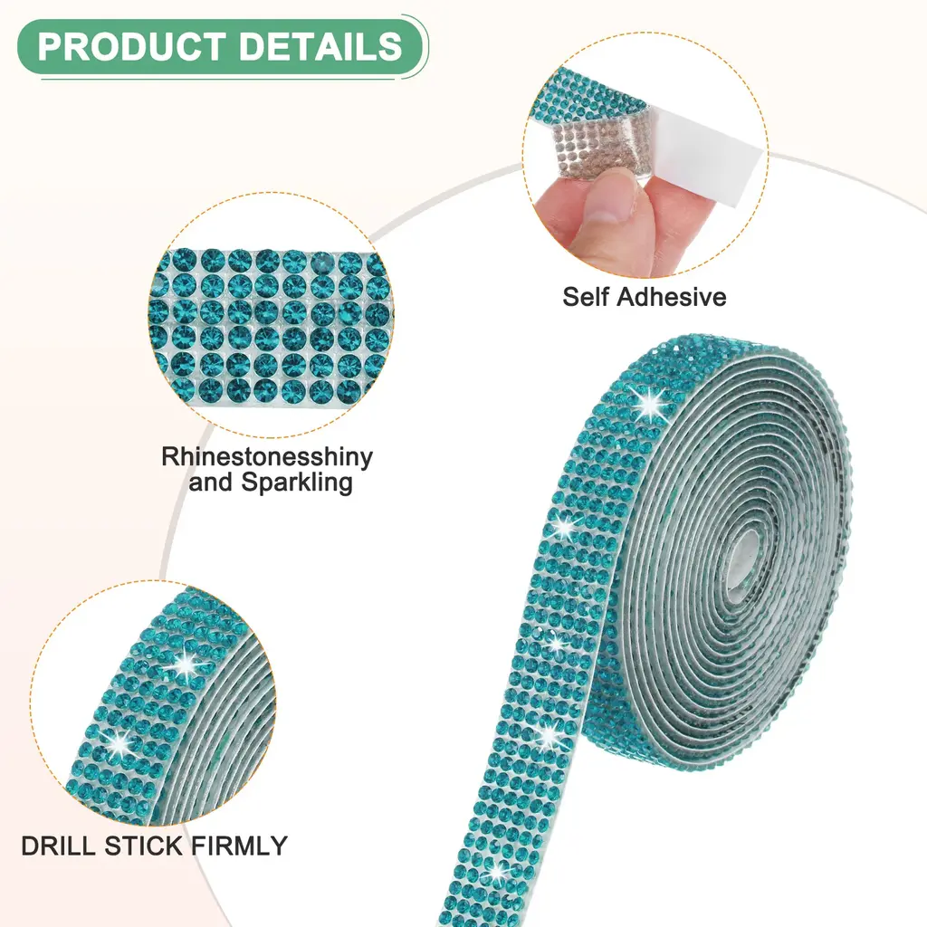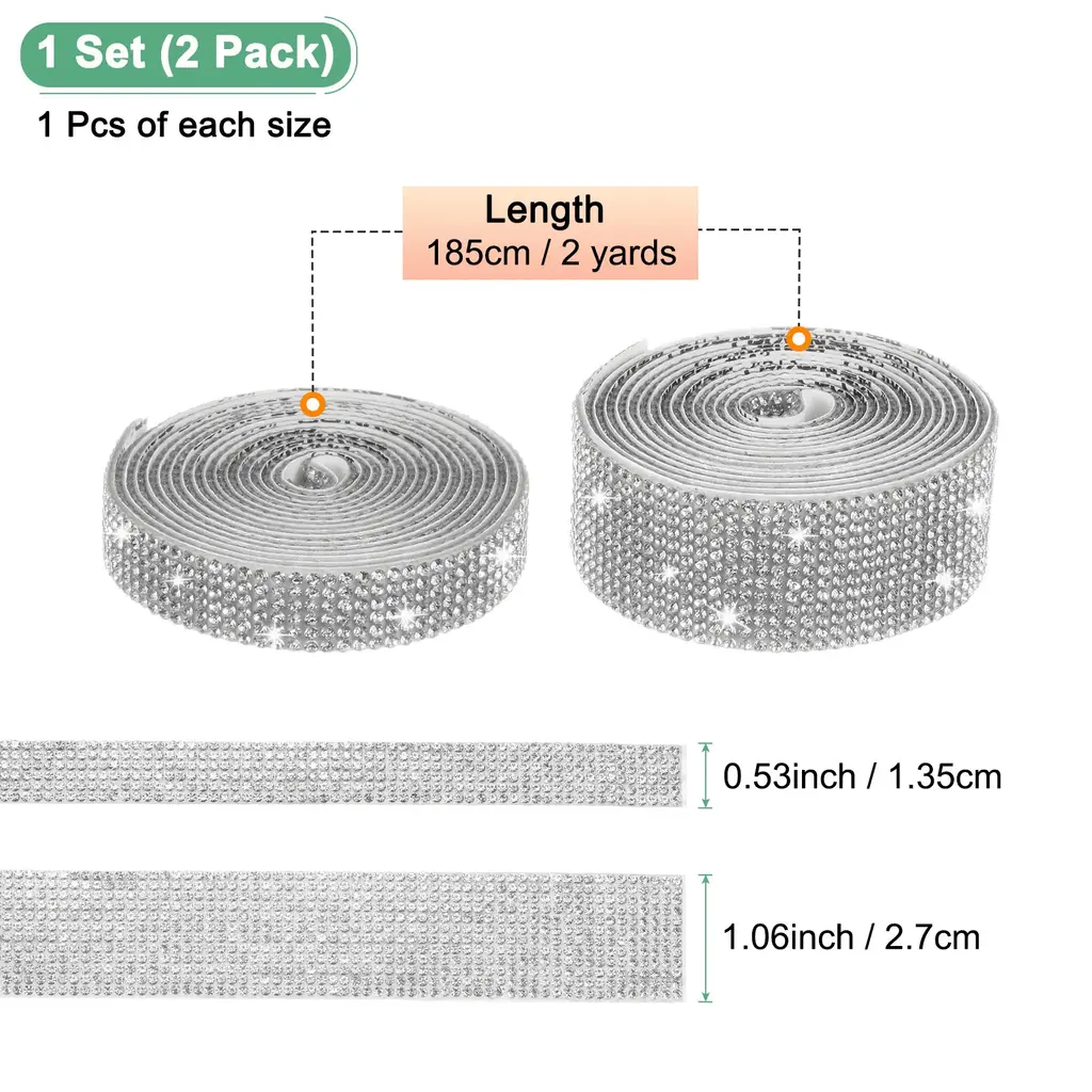 PRODUCT APPLICATIONSOur rhinestone ribbons have various applications. They can be used for various craft projects such as creating hair accessories, wreaths, vases, picture frames, candle holder decorations, and more. It can also be used for weddings, Christmas, birthdays, and dates, you can also use it for DIY decorative necklaces, bracelets, hair accessories, bridal belts, or for bouquets and rhinestone trim for furniture.PRODUCT DETAILS & INCLUDE√ Material: Rhinestone√ Color: White√ Overall Size: Length:185cm/2 yards x 1 cm/0.39 Inch;Width:1.35cm/0.53 Inch;2.7cm/1.06 Inch;√ Package Inclue:2 Rolls x Self Adhesive Rhinestone Chain Ribbon in different sizesPRODUCT ADVANTAGES1. The rhinestone material of this ribbon adorned with glitters is durable and sturdiness, flexible, and sparkle, ensuring a comfortable and pleasant feel when handling or wearing it.2. Our crystal rhinestone diamond ribbon can be reused, sturdy not easy to break, deform, or bend, and will not fall off the string. And DIY self-adhesive for easy decoration.INSTALLATION1. Clean the items' surfaces;2. Cut out the desired length according to your needs;3. Tear off the sticker from the back;4. Place it on a smooth surface to decorate, the press