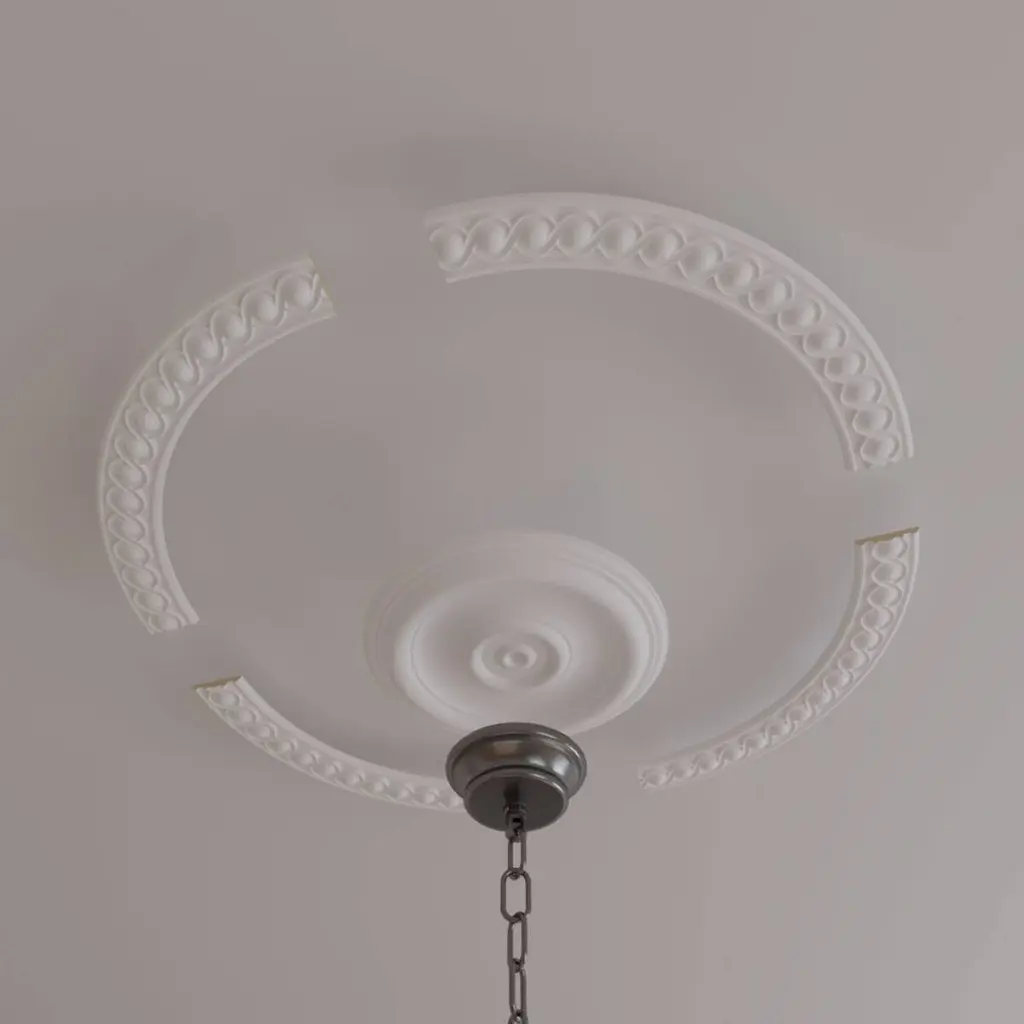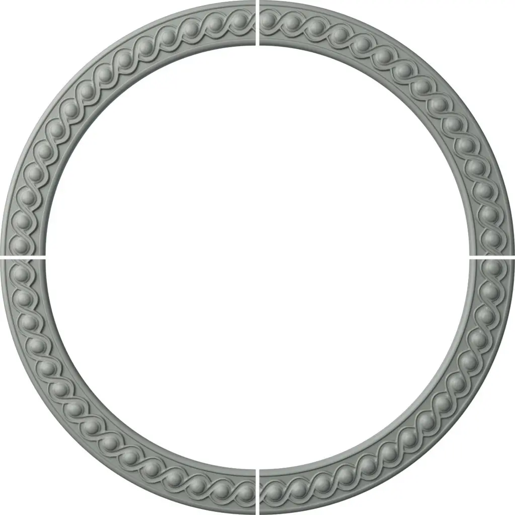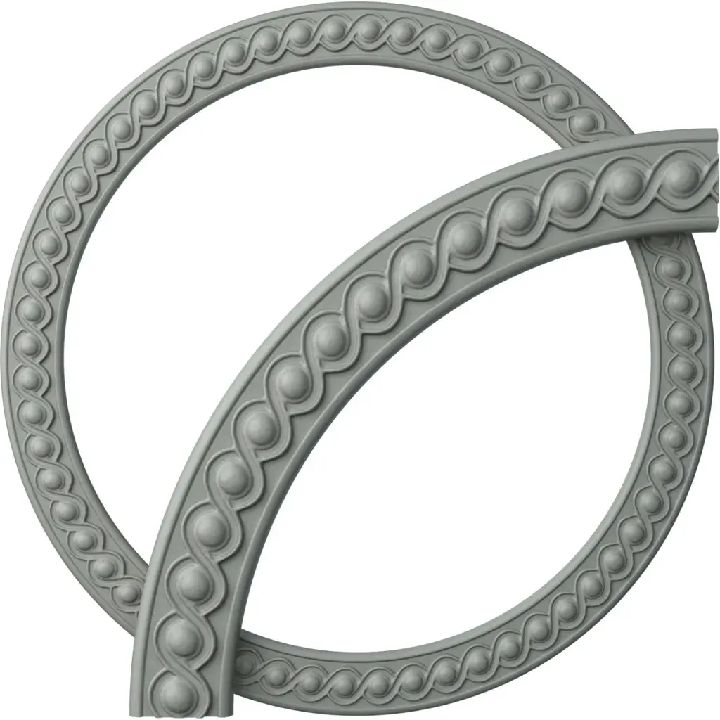 Ceiling rings are often used in conjunction with ceiling medallions in highlighting focal points like chandeliers and ceiling fans. However, ceiling rings can als be used on the wall to accent mirrors, photos and photo frames.•Modeled after original historical patterns and designs•Solid urethane for maximum durability and detail•Lightweight for quick and easy installation•Factory primed and ready for paint or faux finish•Can be cut, drilled, glued, or screwed•Can be used on the interior or exterior•1/4 of complete circle