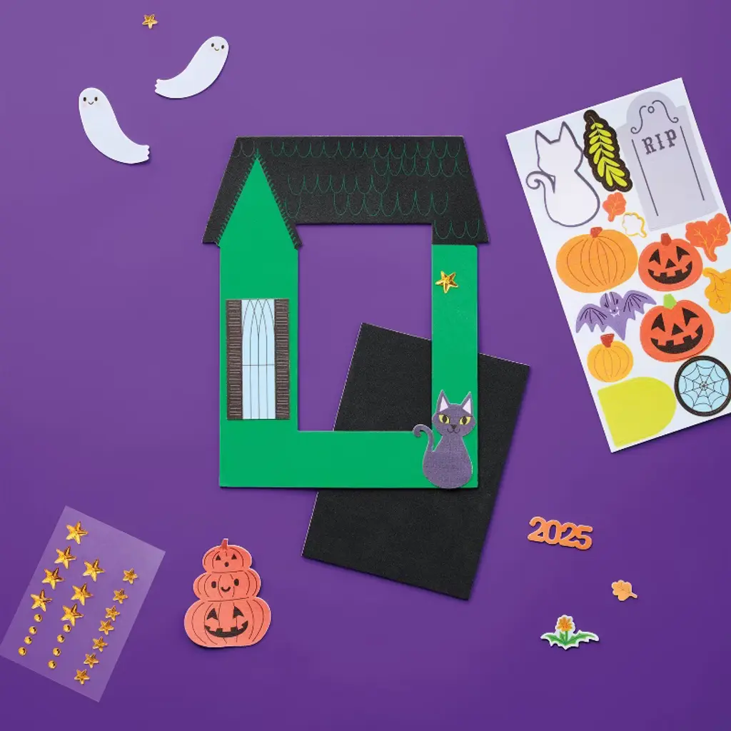 Make your Halloween decor feel special with this Create-Your-Own Halloween Photo Frame Kit from Mondo Llama™. This kit includes two house-shaped frames in shades of purple and green. The kids can showcase their creativity by decorating the frames with creepy stickers, glitters, and complete them by attaching the frame. Once completed, display your favorite Halloween memories in the frames for a personalized touch.