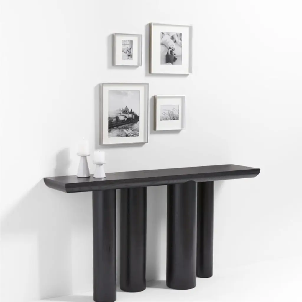 Create an instant gallery with this four-frame set. Our brushed silver frames add drama and shine to photo displays with their shadow-box styling and oversized off-white mats. A Crate & Barrel exclusive, the set unites 4"x6", 5"x7", 8"x10" and 11"x14" frames with a brushed silver finish. Display the quartet in a grid, in a line down a hallway or arranged as a staggered gallery wall.