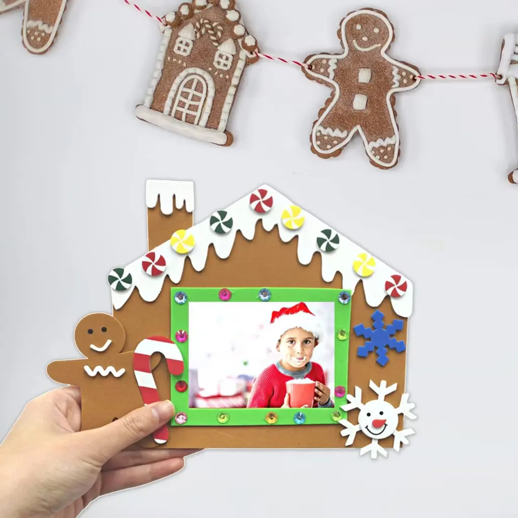 4E's Novelty Foam Gingerbread House Picture Frame Craft (12 Pack) – Diy Self Adhesive Christmas Photo Magnet Craft Kits For Kids Ages 3+ Bulk